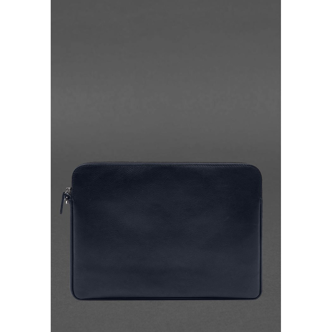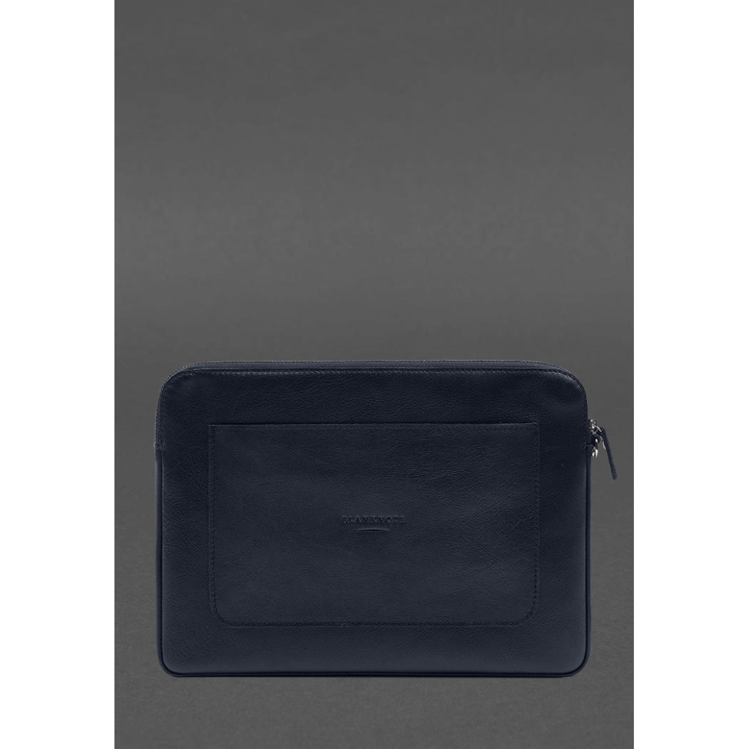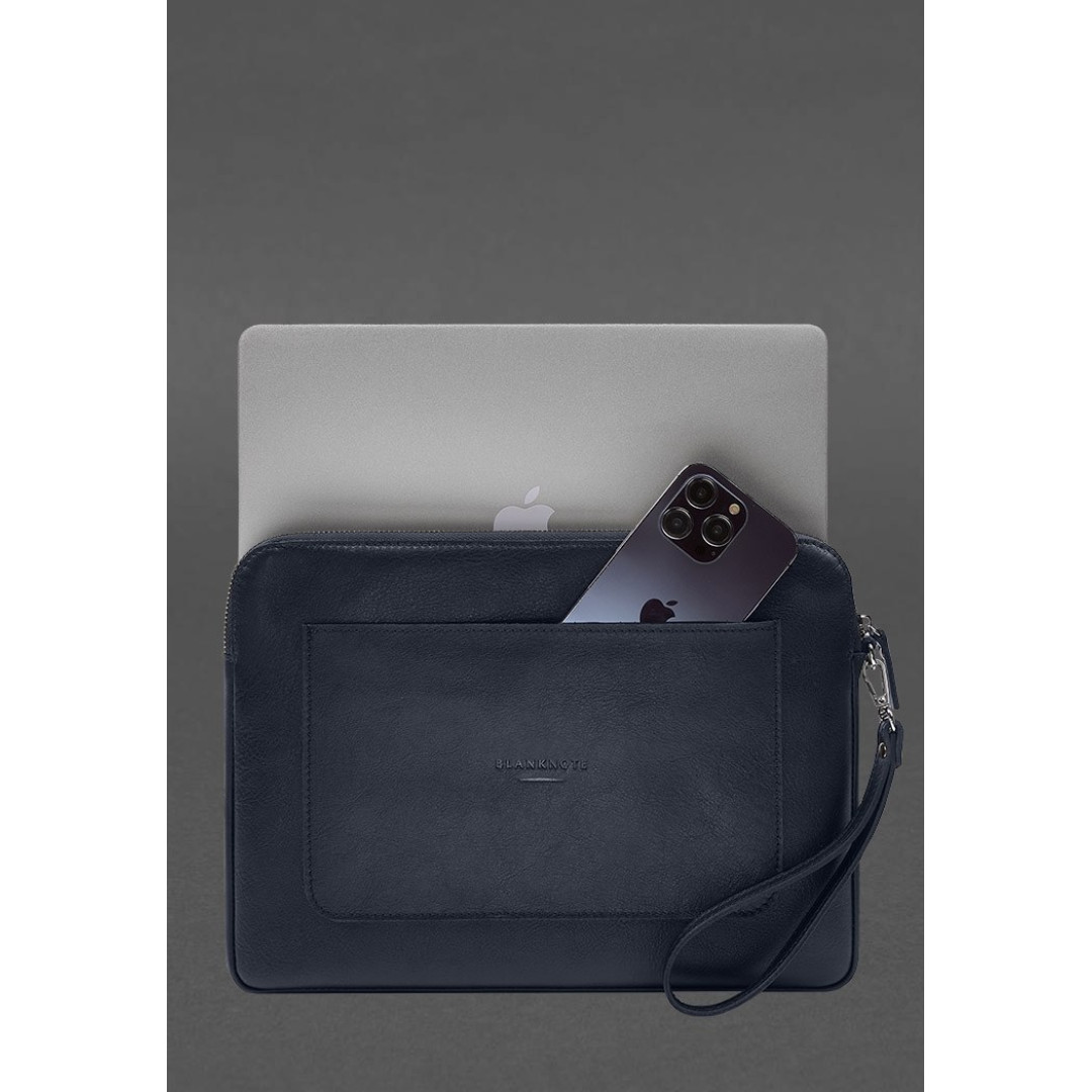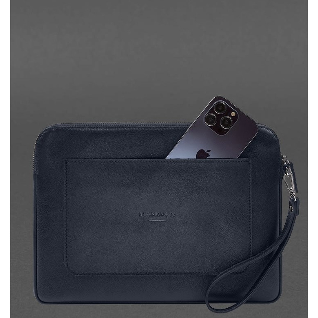 Кожаный чехол для ноутбука на молнии с карманом и петлей на руку BlankNote в синем цвете.