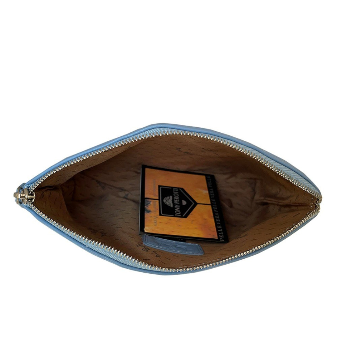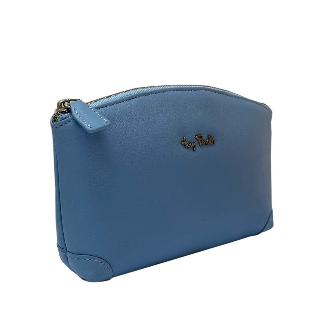 Женская косметичка TONY PEROTTI выполнена из натуральной телячьей кожи высшего качества в голубом цвете.
