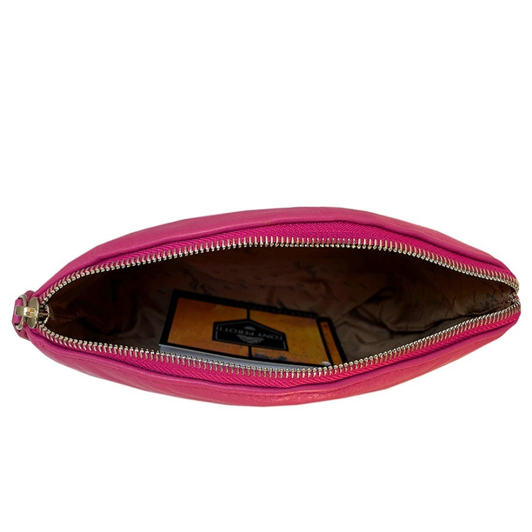 Женская косметичка TONY PEROTTI выполнена из натуральной телячьей кожи высшего качества в розовом цвете.