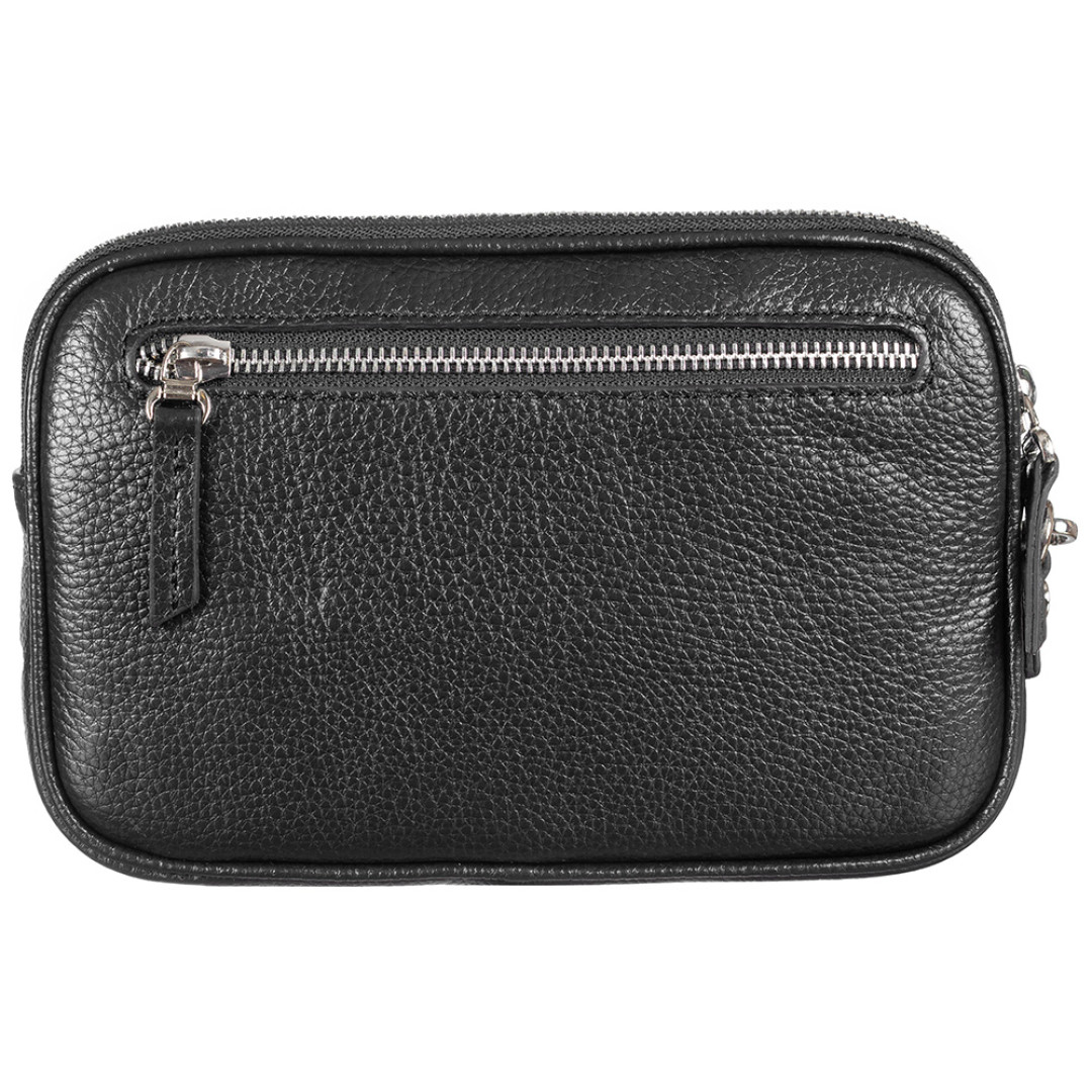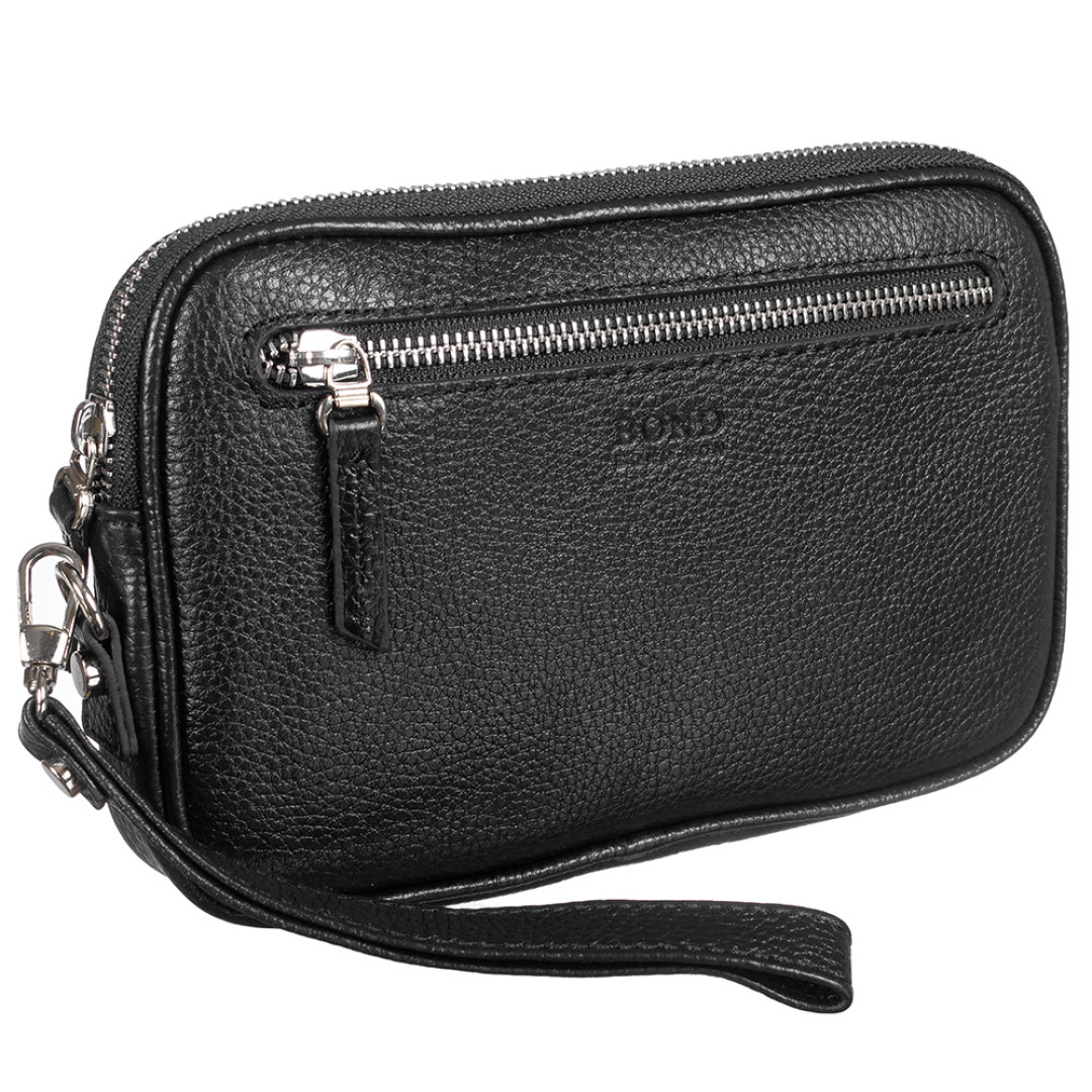 Особенности: внутри расположен 1 прорезной карман на молнии и 2 накладных кармана, предназначенных для хранения мобильного телефона, разных портативных гаджетов и мелочей. На лицевой и тыльной сторонах есть 2 прорезных кармана на молнии. В комплект прилагается съемный запястной ремешок-петля.