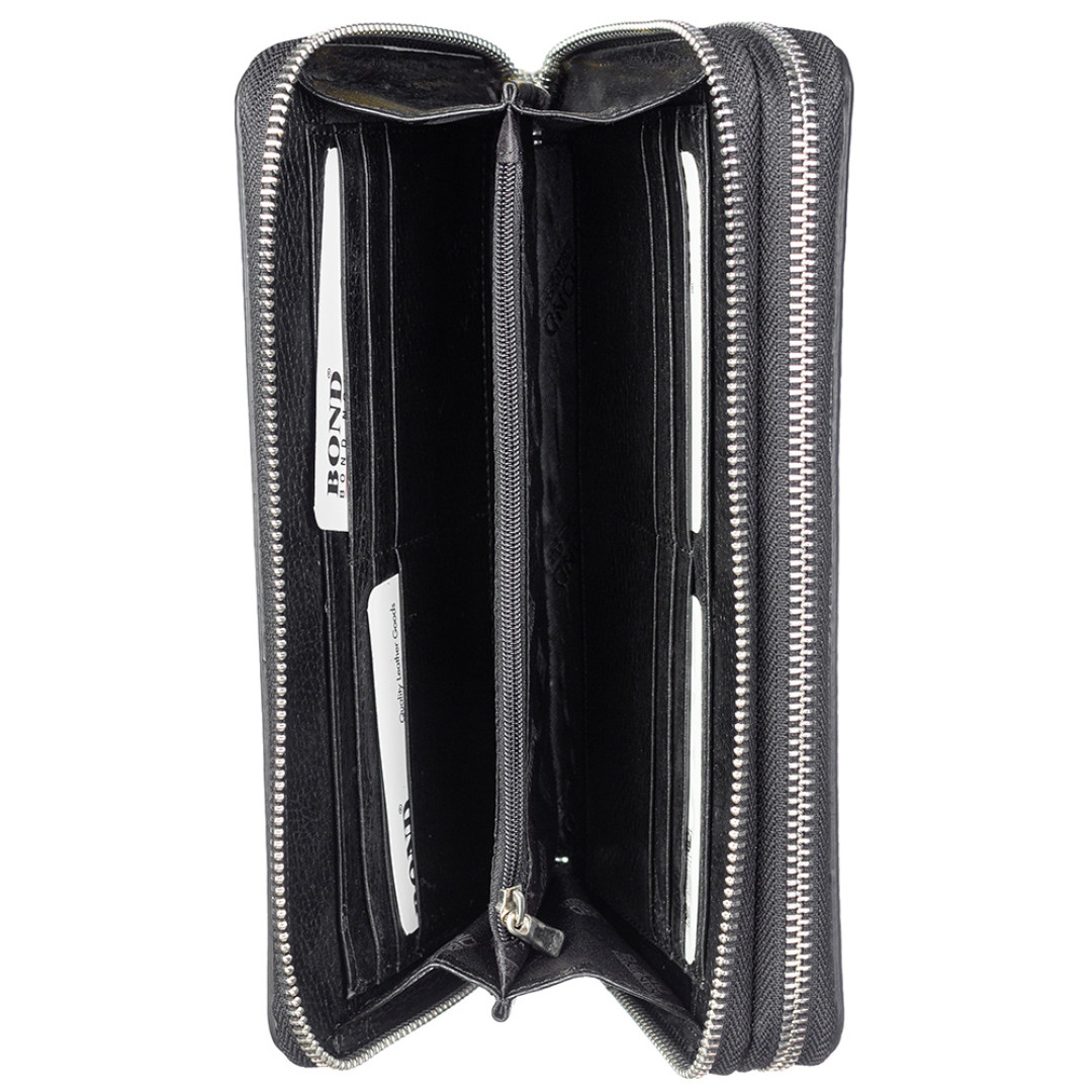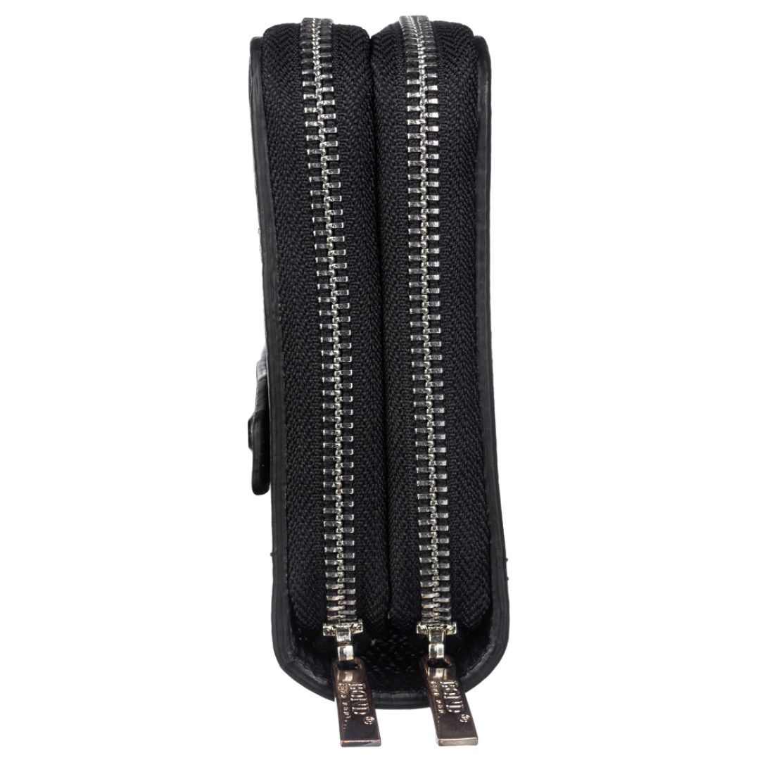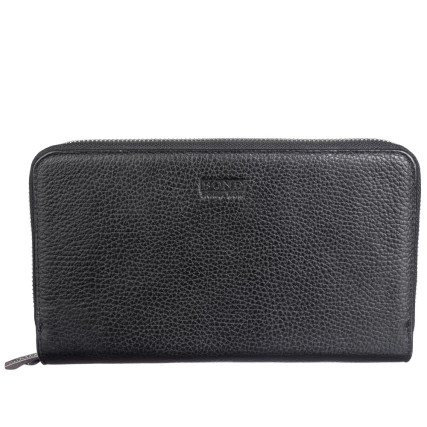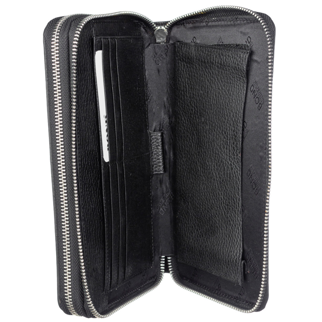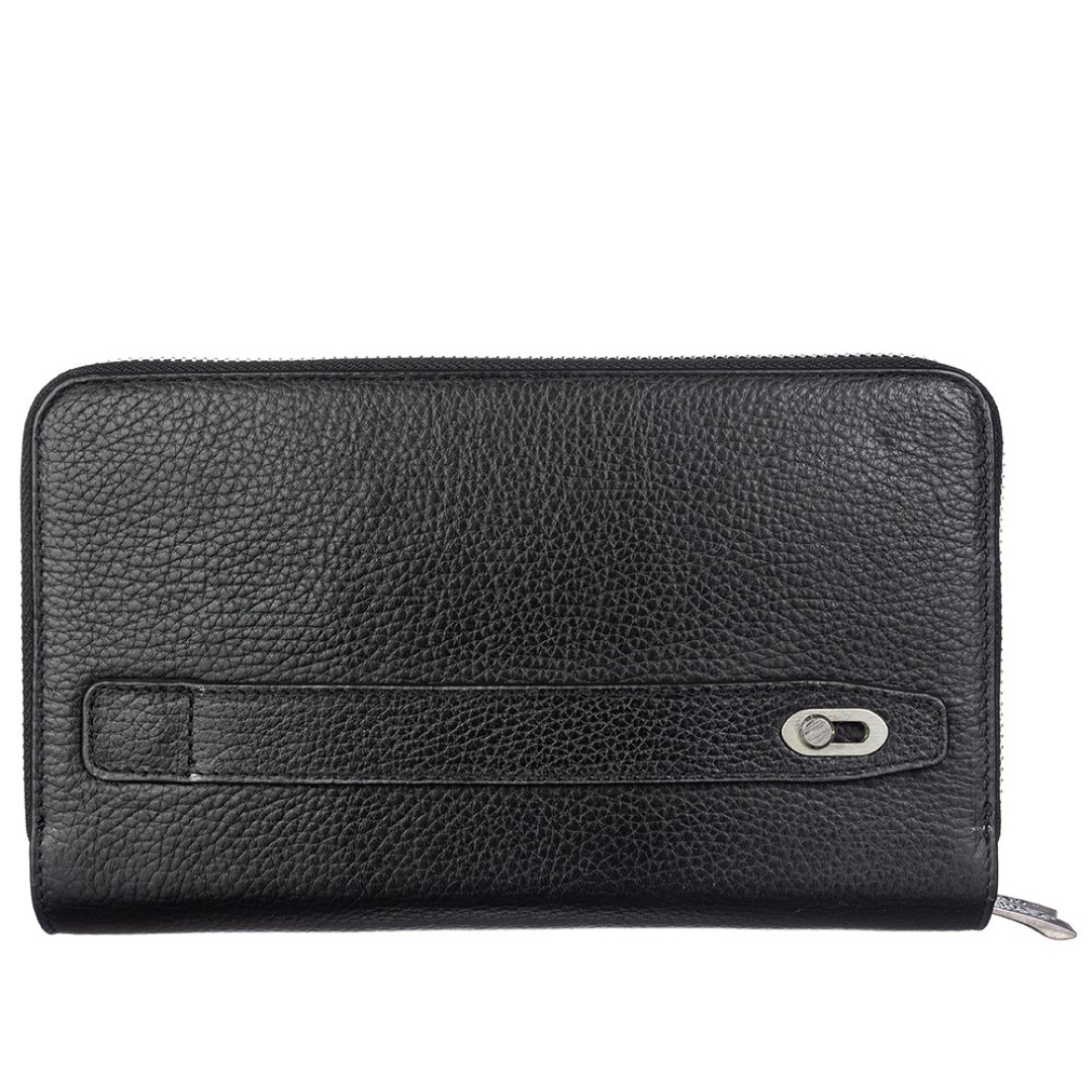 Особенности: два отделения на металлических молниях, внутри множество карманчиков для карточек, документов и денег. На тыльной стороне ручка для ношения в руке.