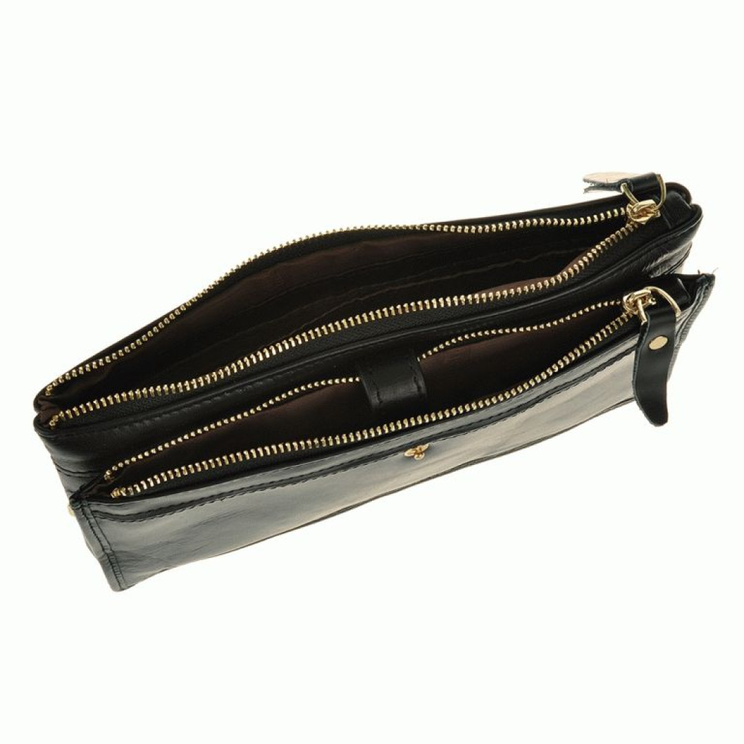 Особенности: имеет два отдела на молнии, в основном отделении 10 отсеков для карт, 2 отдела для купюр, 2 прозрачных окошка. В комплекте кистевой ремень.