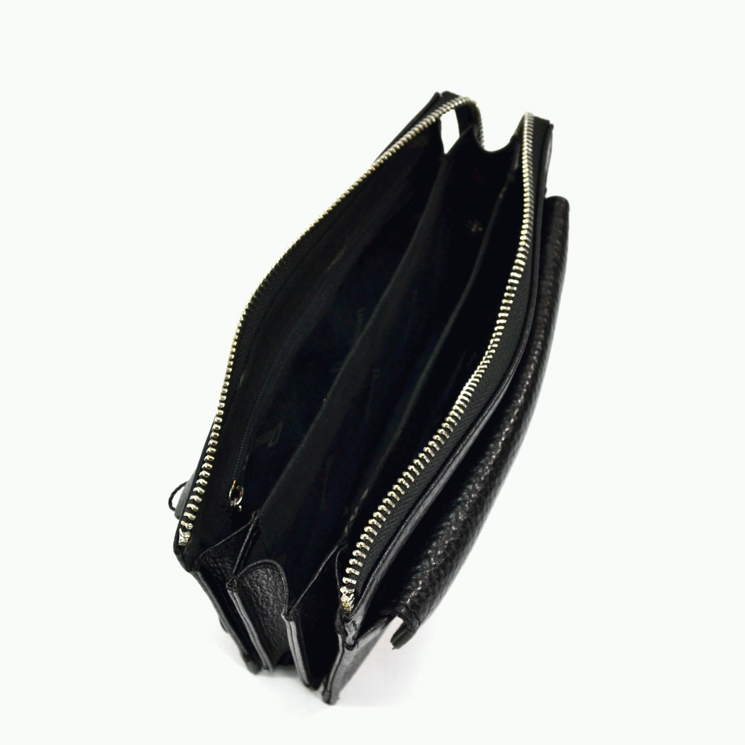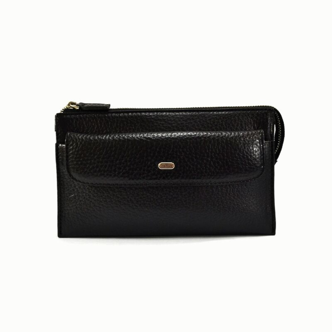 Особенности: включает в себя 3 основных отделения для купюр, которые разделены перегородками. На лицевой стороне – выдвижной карман с отделением для купюр и 6 кармашками для пластиковых карт. На тыльной стороне - держатель для ладони.