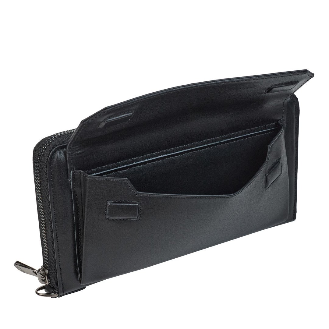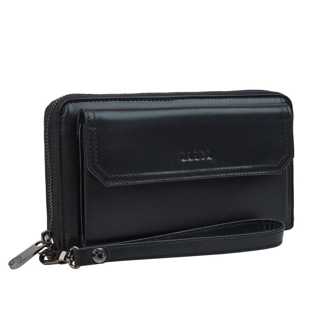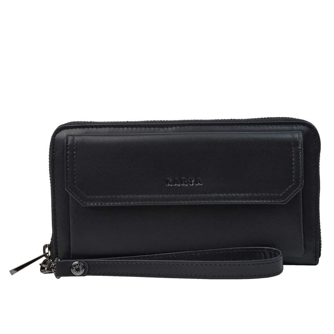 Мужской клатч Karya выполнен из натуральной гладкой кожи в черном цвете.