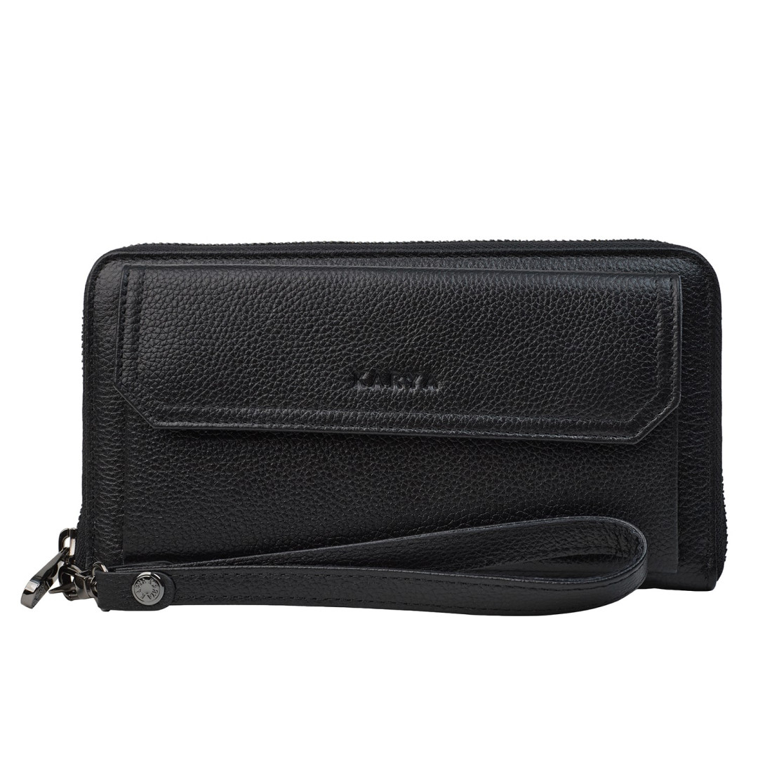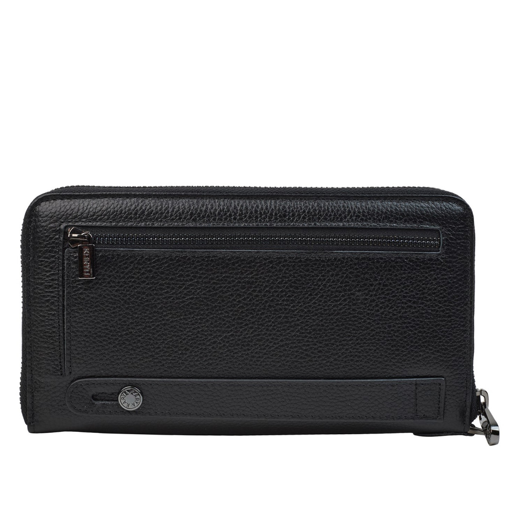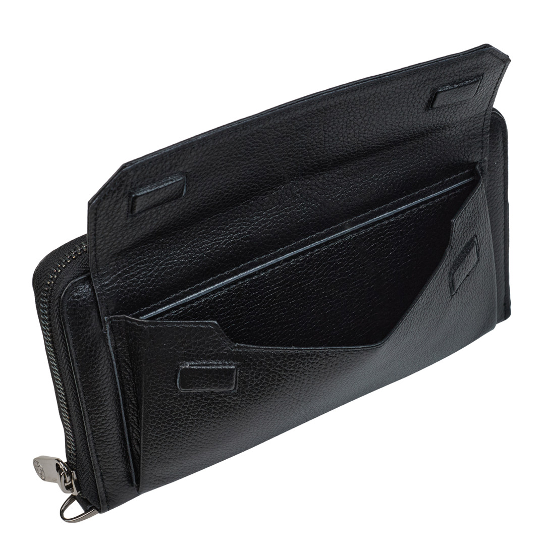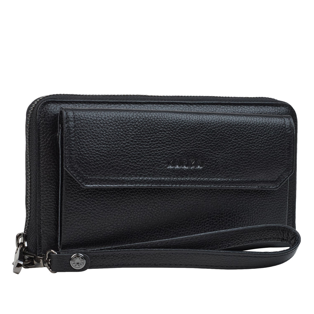 Мужской клатч Karya выполнен из натуральной кожи (флотар) в черном цвете.
