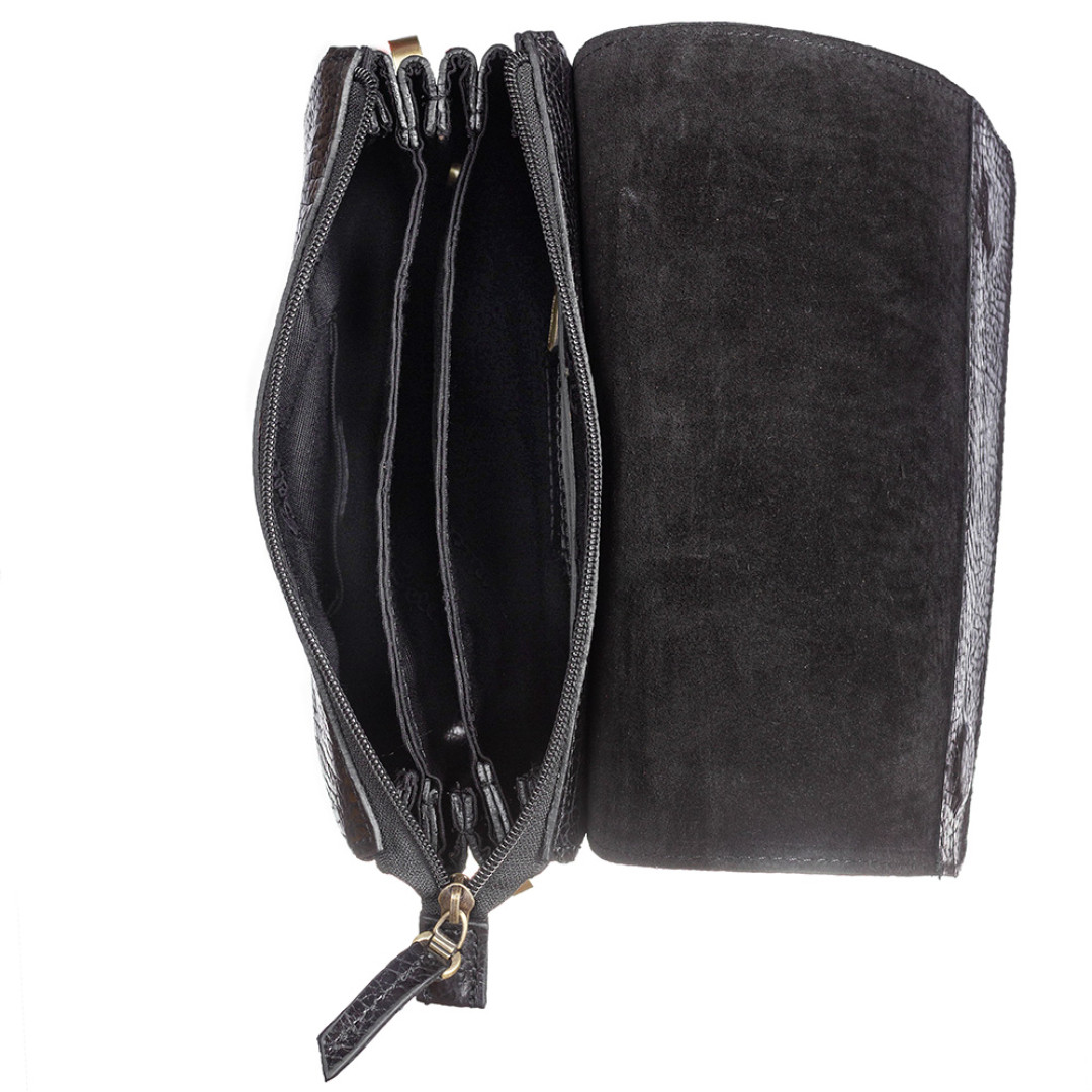 Особенности: имеет три отделения, внутри отделения для визитных карточек, денег, документов. Удобная ручка расположена сбоку и ремень на плечо.