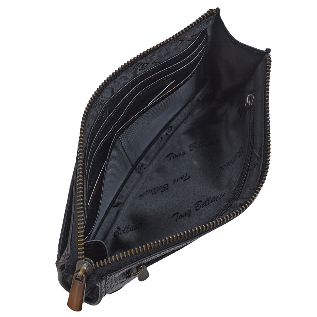 Мужской клатч Tony Bellucci выполнен из натуральной кожи в черном цвете.