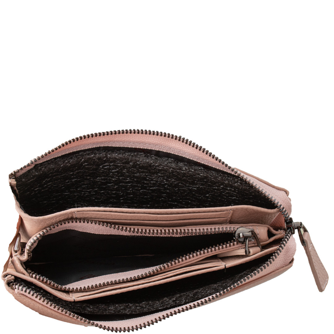 Особенности:  размещает внутри 2 главных отделения, перегородку на молнии. Внутри  имеются 3 дополнительных  кармашка, 6 ячеек для карточек и короткий ремешок.