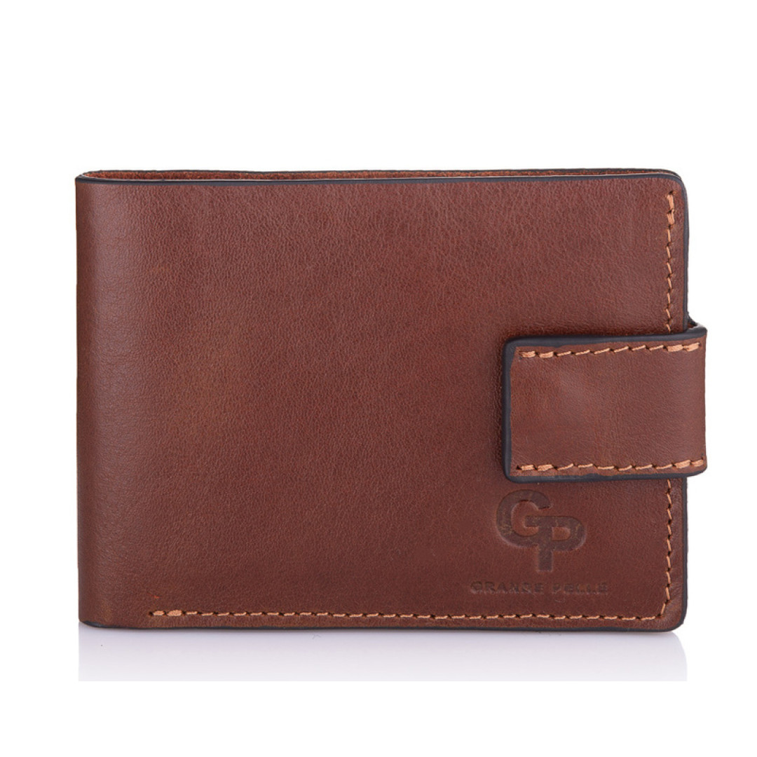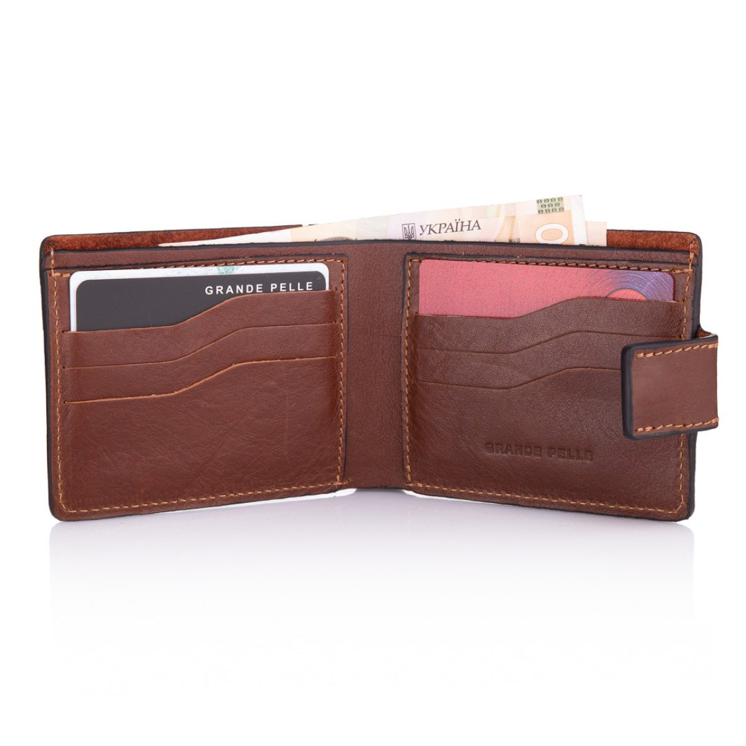 Мужской кошелек Grande Pelle изготовлен из гладкой итальянской кожи растительного дубления.