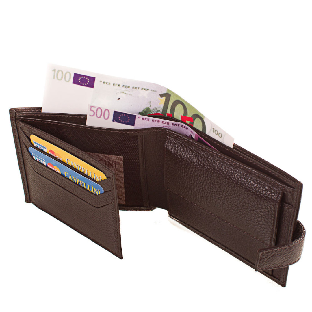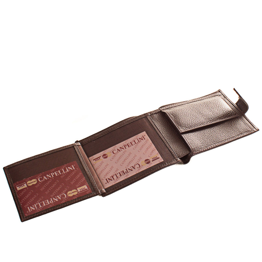 Мужской кошелек в два сложения Canpellini выполнен из натуральной кожи в коричневом цвете.