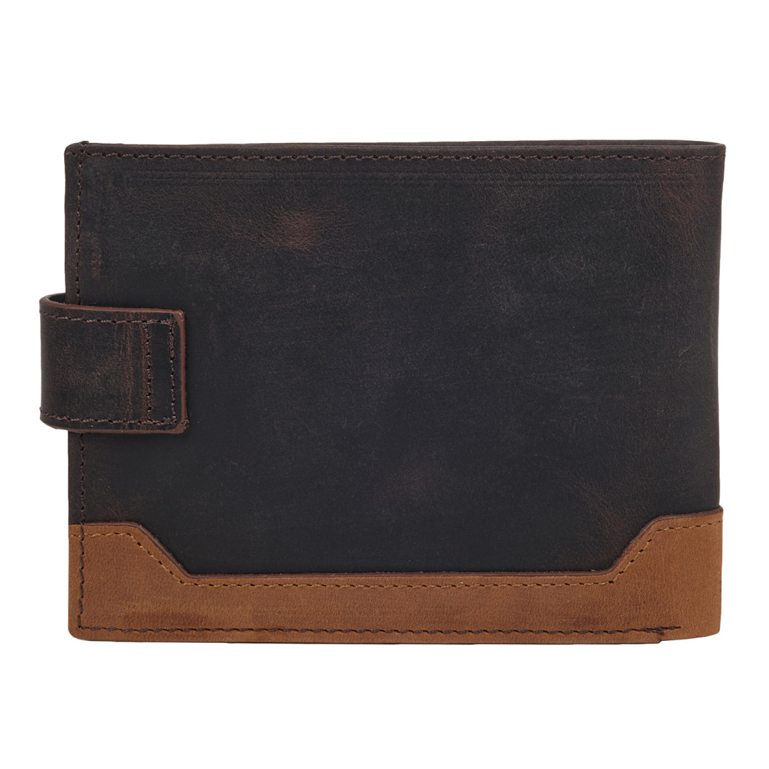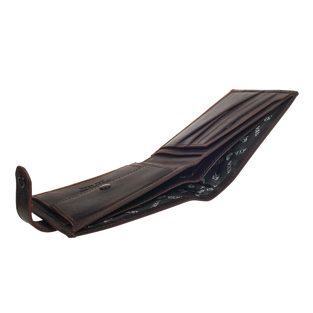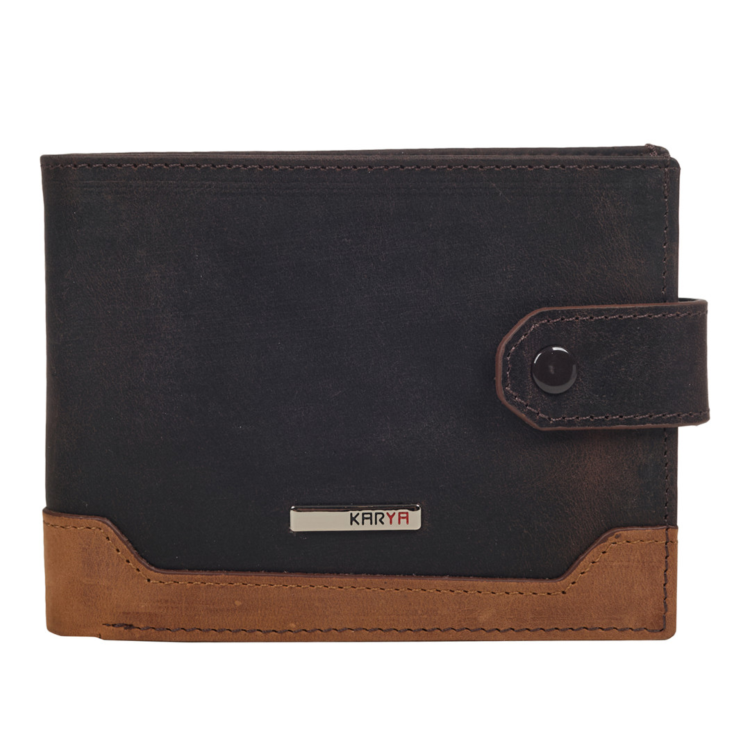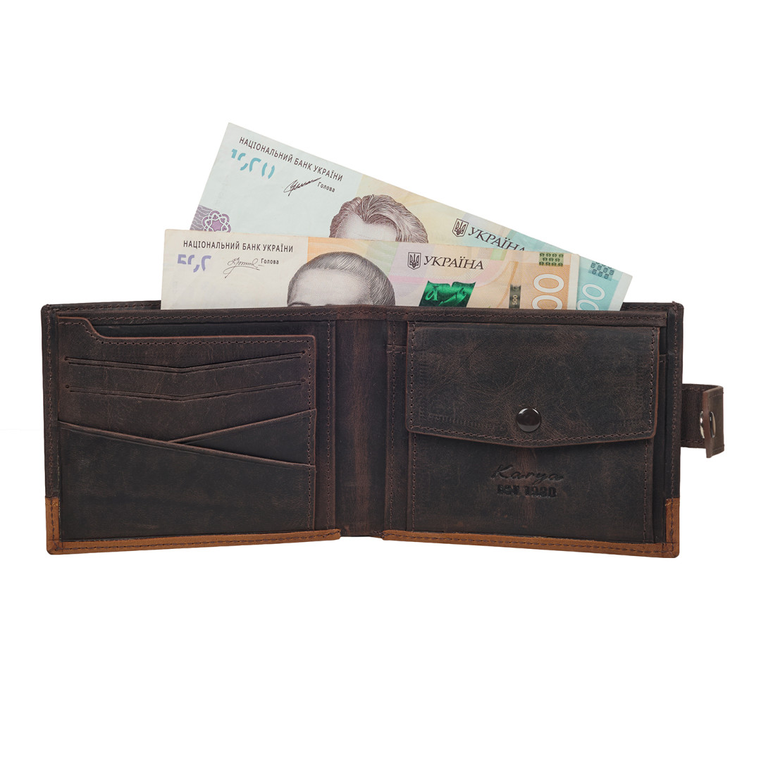 Мужской кожаный кошелек с зажимом KARYA выполнен из натуральной кожи (крейзи хорс) в коричневом цвете.