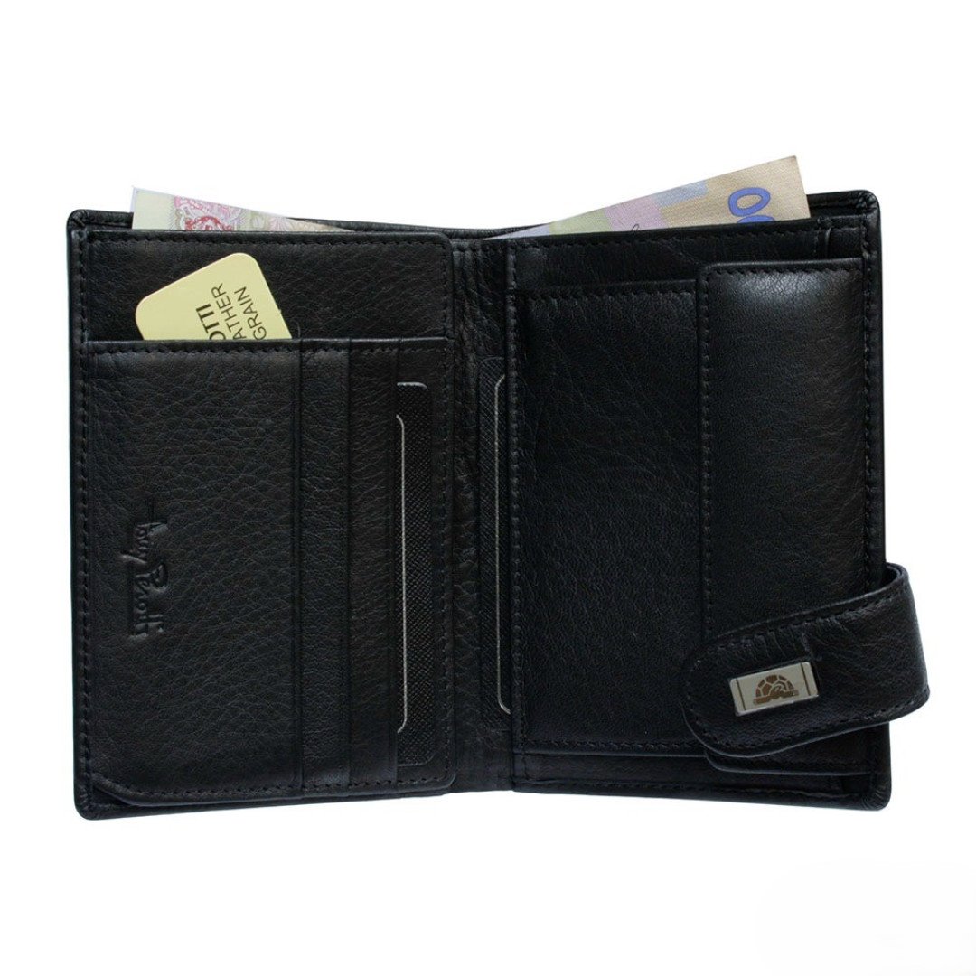 Мужской кошелек TONY PEROTTI выполнен из лицевого слоя натуральной кожи теленка в черном цвете.