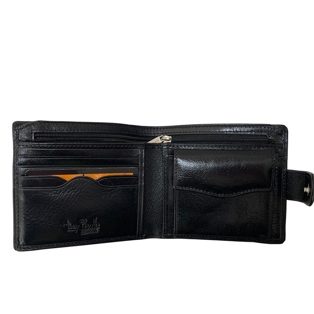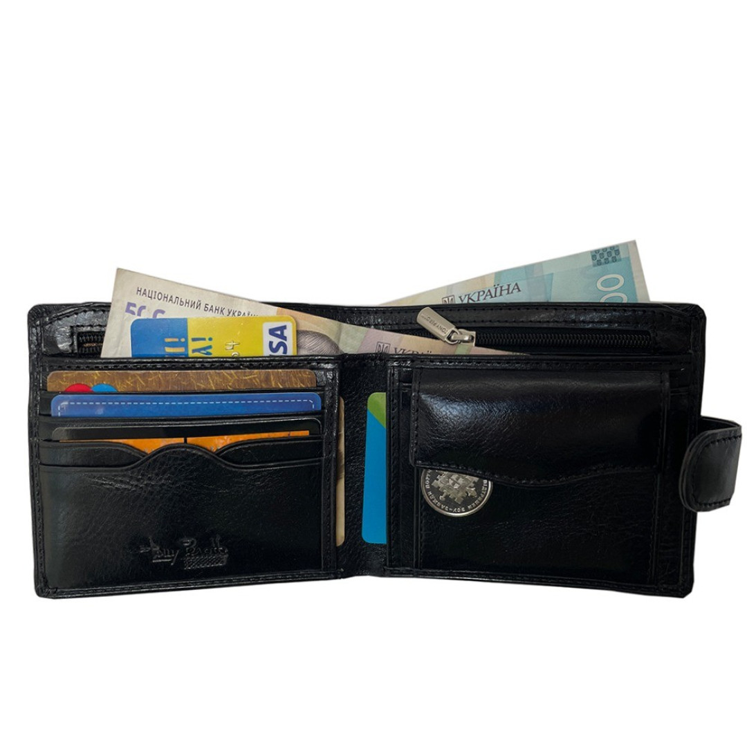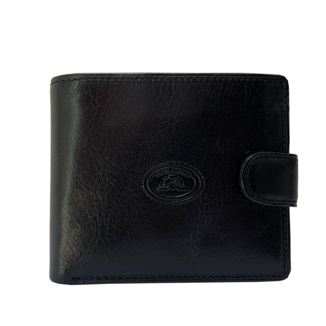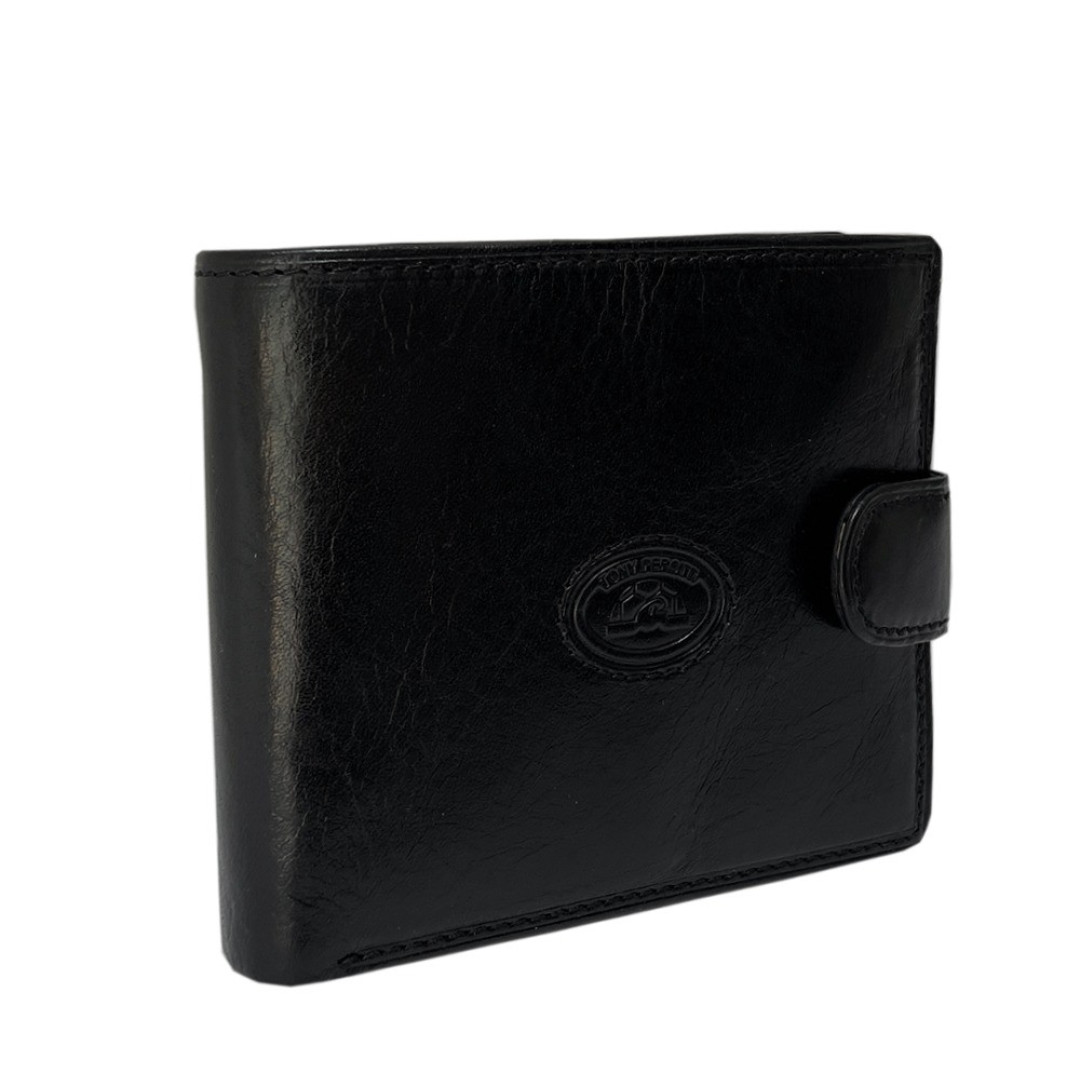 Мужской кошелек TONY PEROTTI выполнен из лицевого слоя натуральной кожи быка высшего качества в черном цвете.