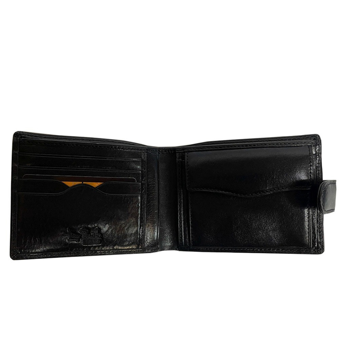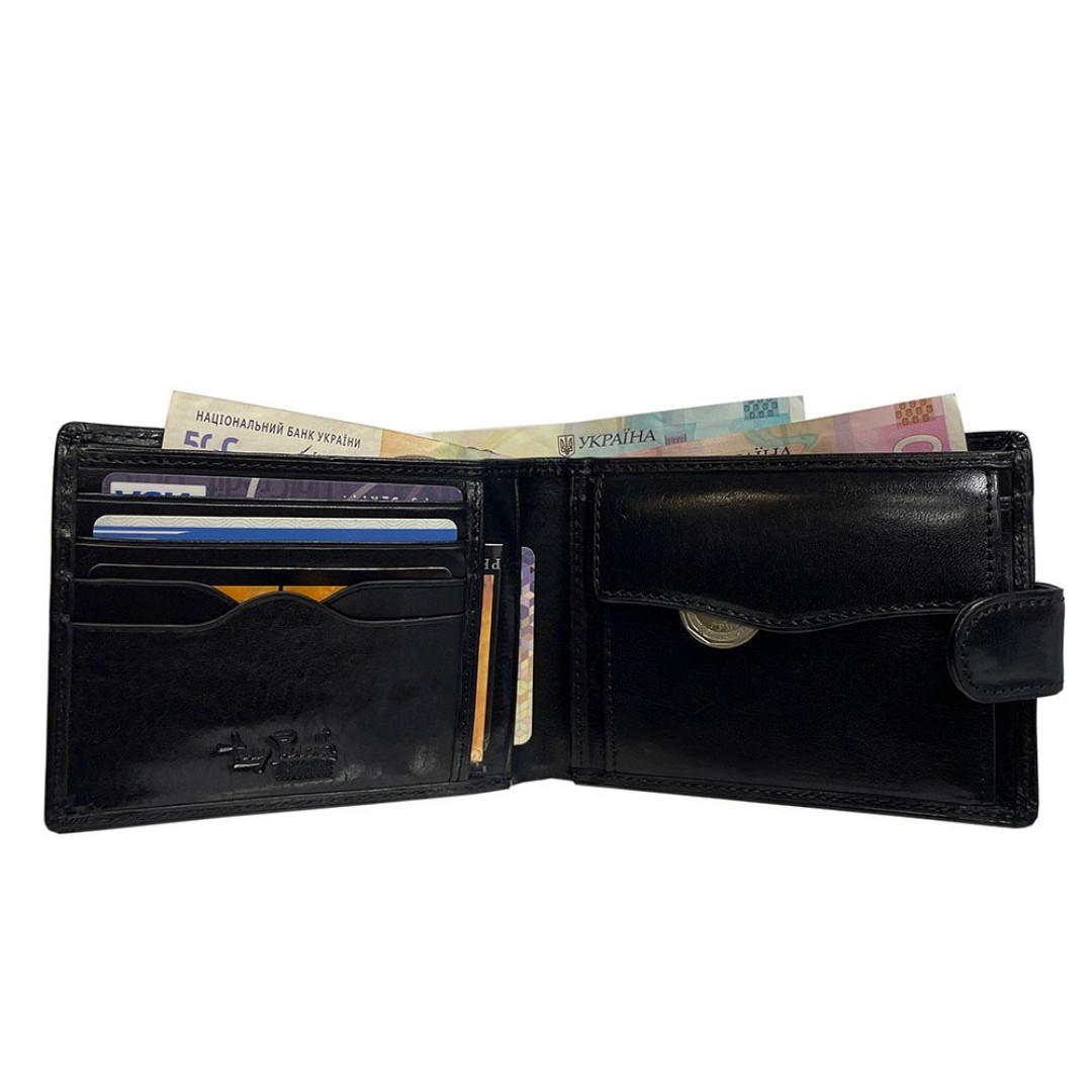 Мужской кошелек TONY PEROTTI выполнен из лицевого слоя натуральной кожи быка высшего качества в черном цвете.
