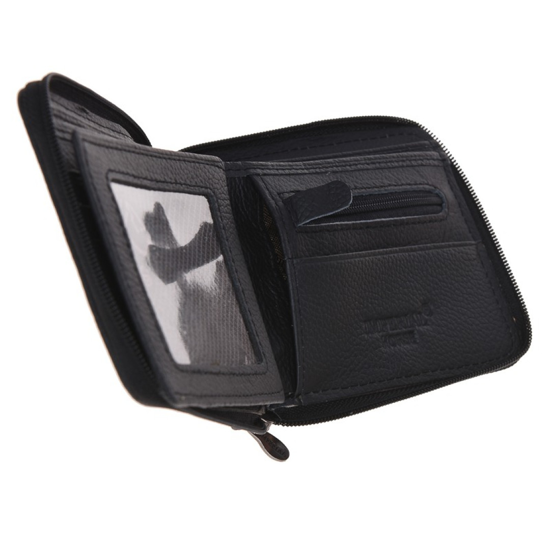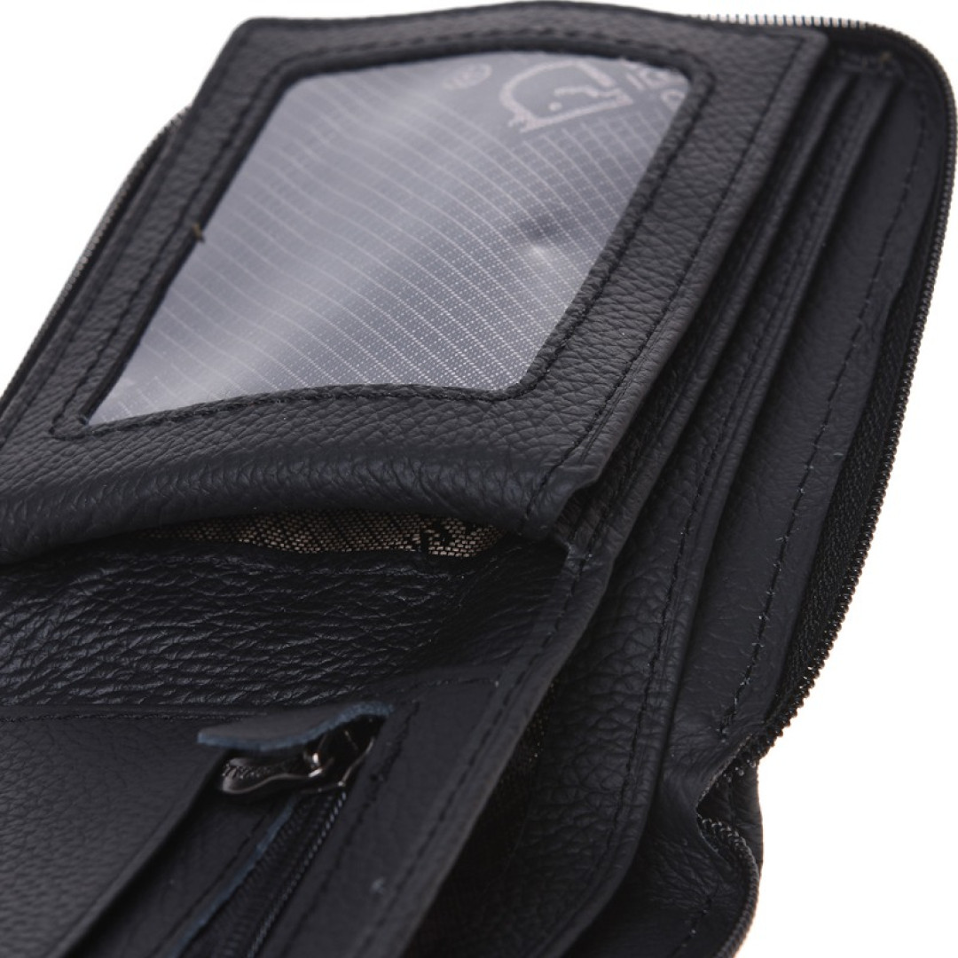 Особенности: имеет два отдела для купюр, одну монетницу на молнии, восемь отделов под карты.