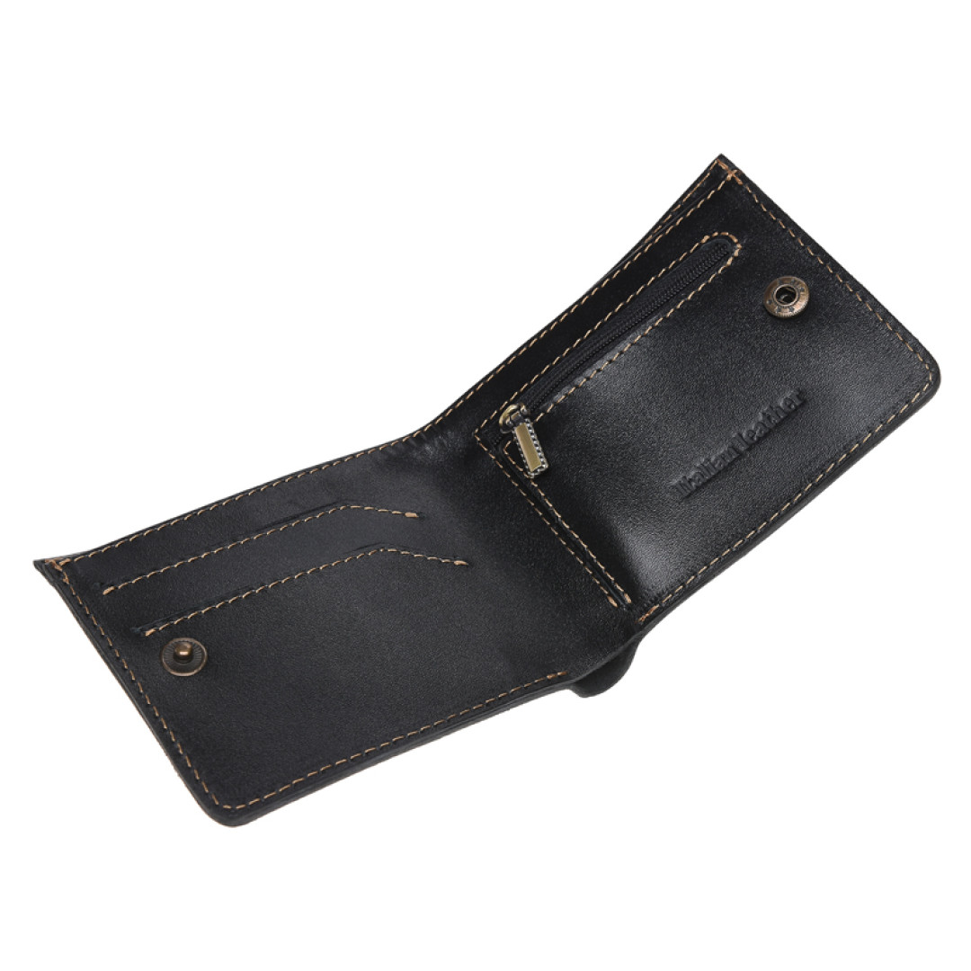 Особенности: имеет одно основное отделение для купюр, 2 слота для кредитных карт, монетница. Портмоне надежно закрывается на внутреннюю кнопку.