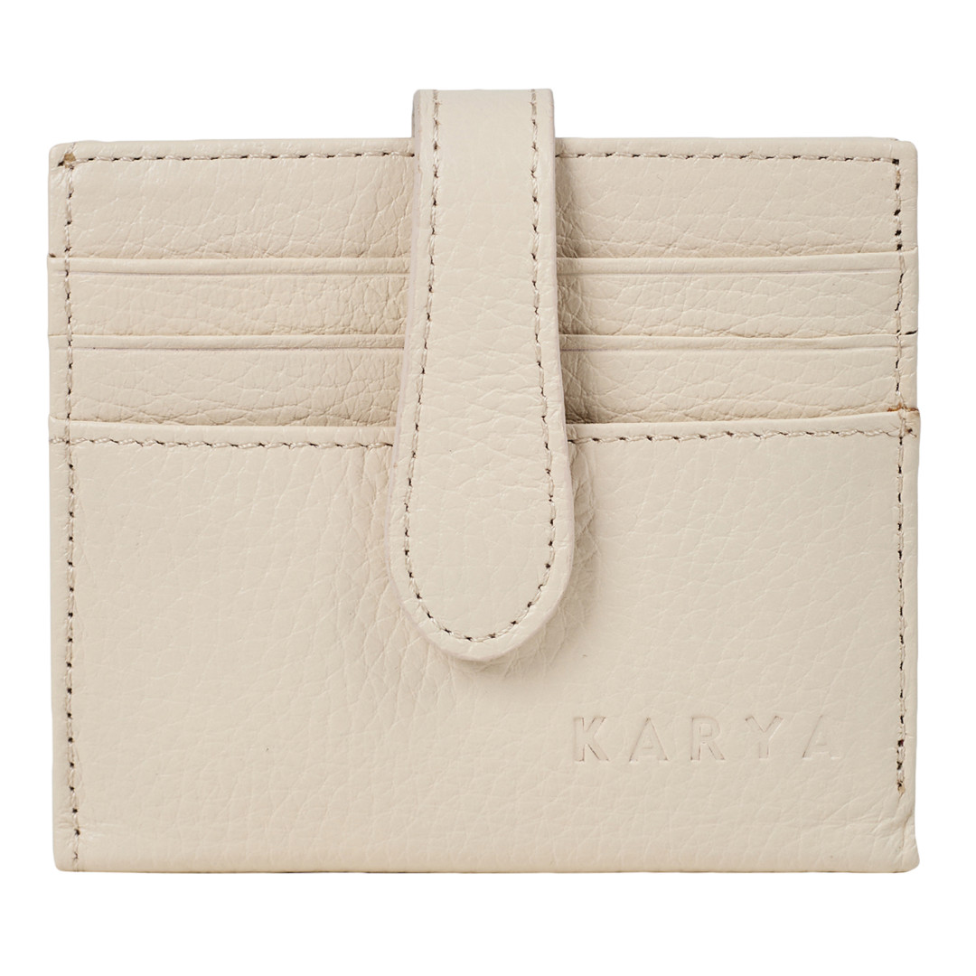 Картхолдер Karya выполнен из натуральной кожи в бежевом цвете.