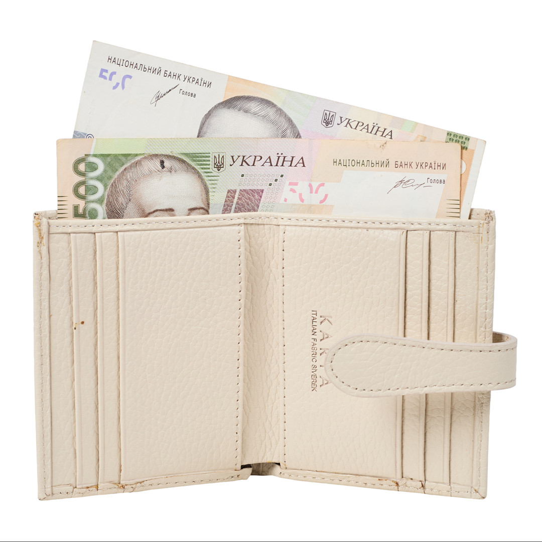 Особенности: на кнопке, имеет двенадцать слотов для скидочных карточек и отделение для купюр.