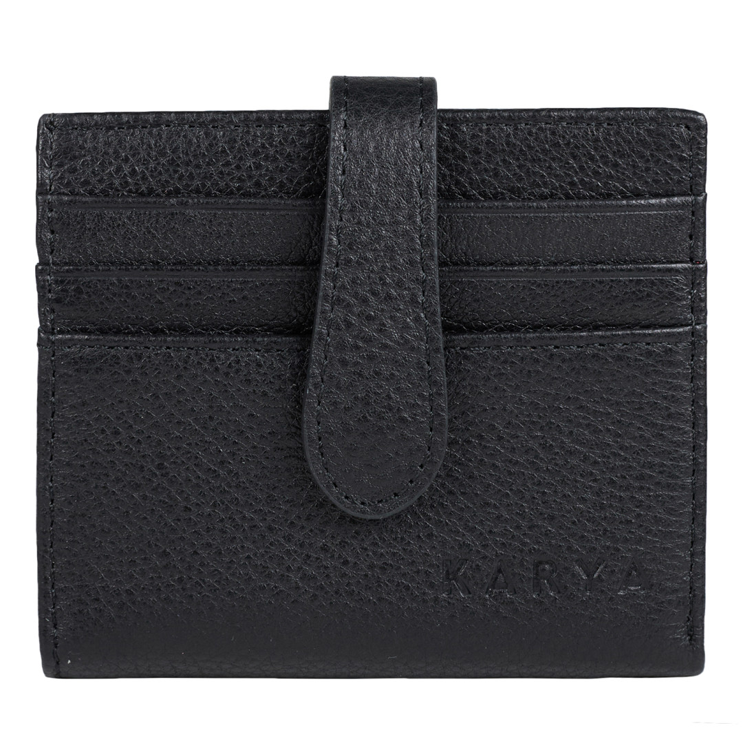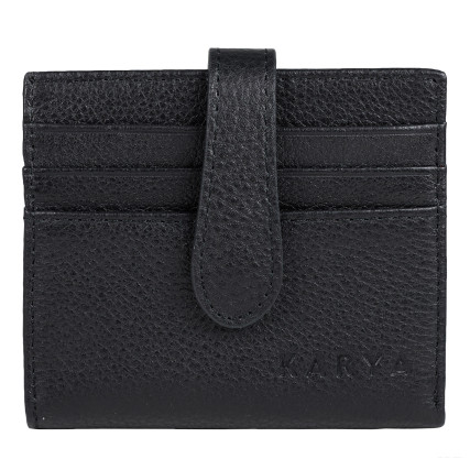 Картхолдер Karya выполнен из натуральной кожи в черном цвете.