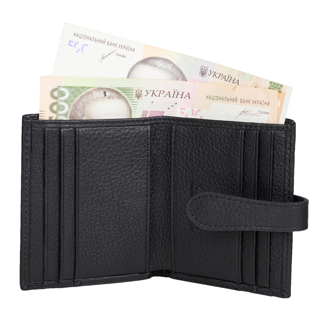 Особенности: на кнопке, имеет двенадцать слотов для скидочных карточек и отделение для купюр.