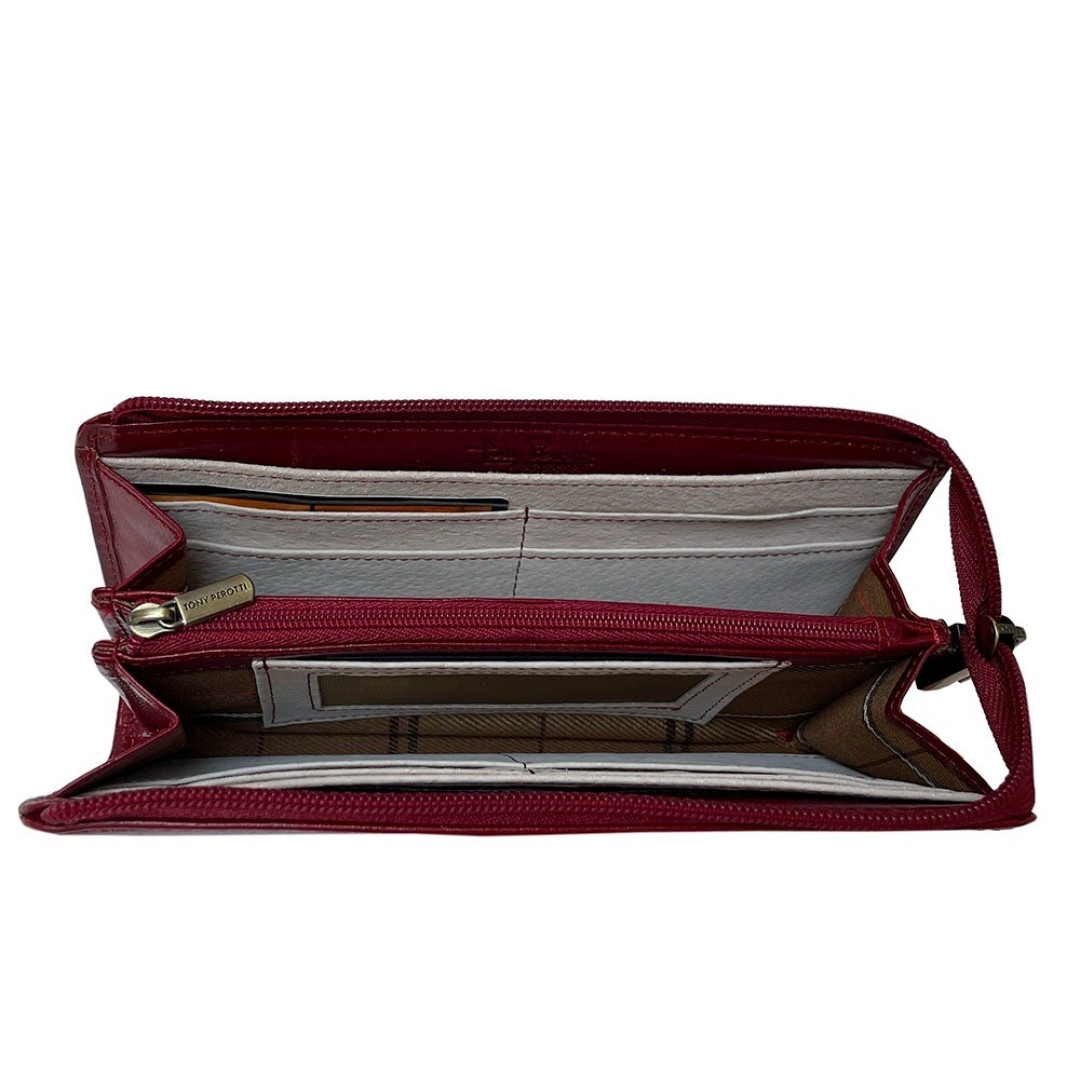 Кошелек TONY PEROTTI выполнен из натуральной кожи быка в красном цвете.