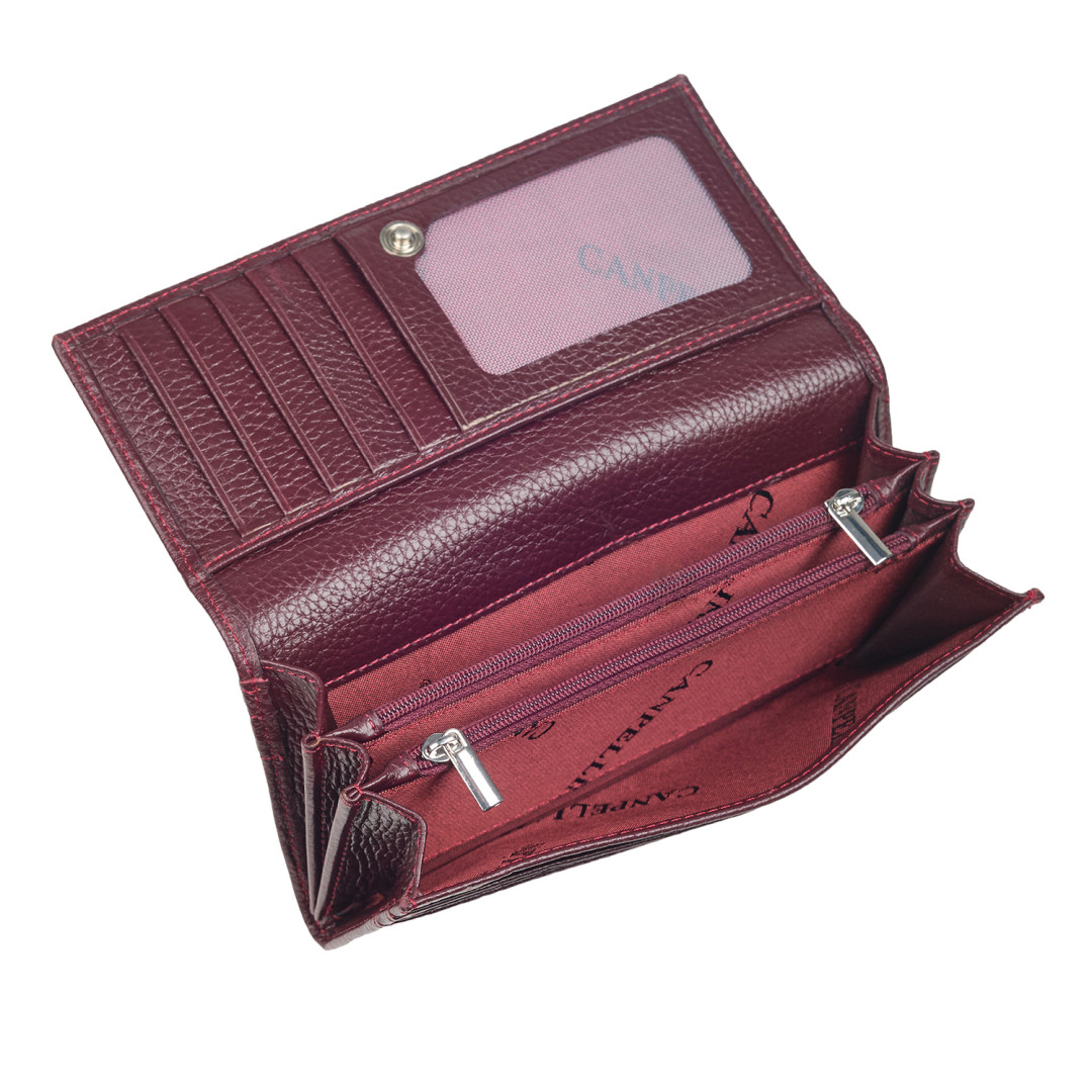 Женский кошелек Canpellini выполнен из натуральной кожи в бордовом цвете.