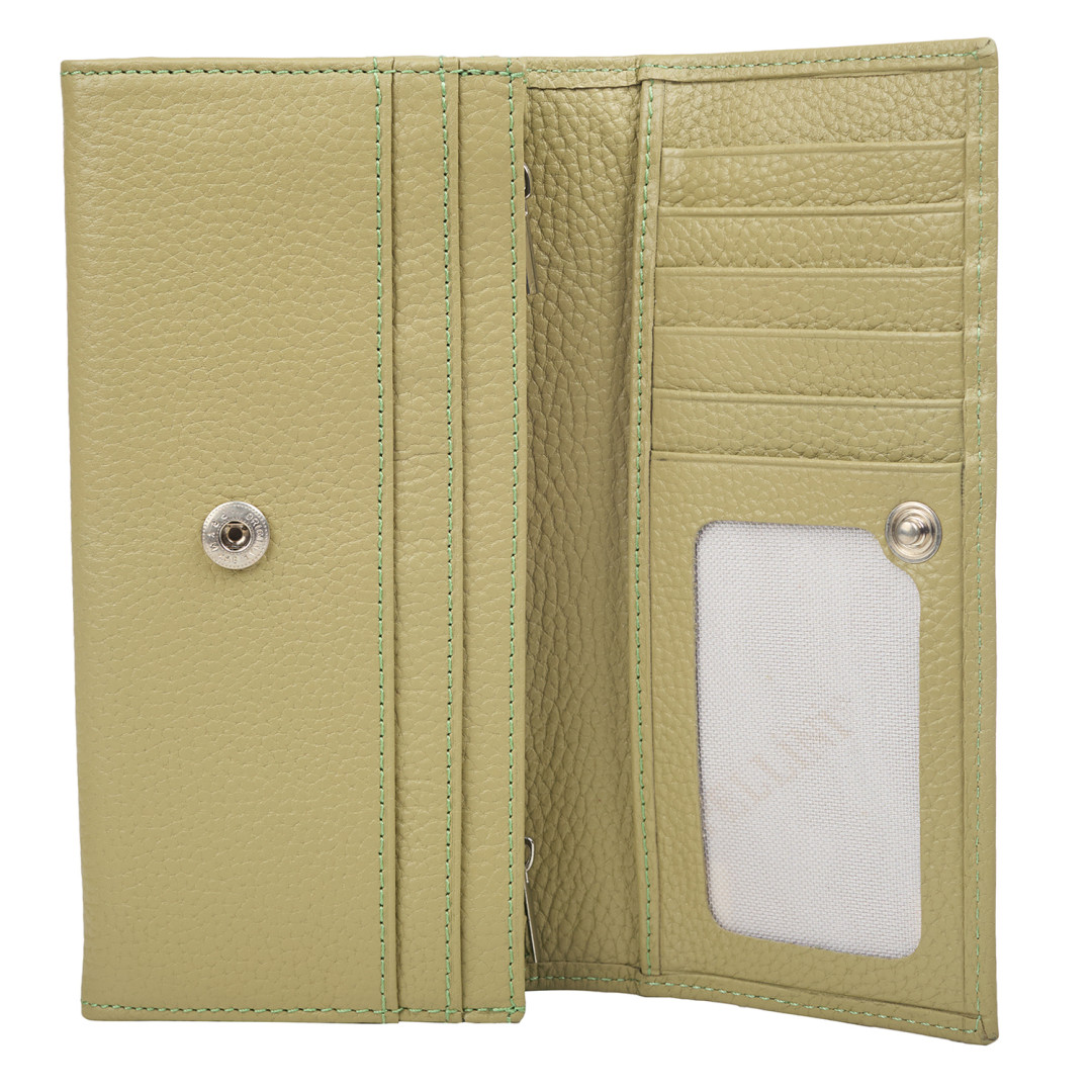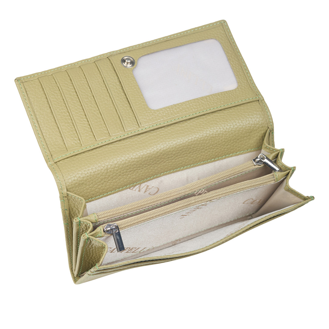Женский кошелек Canpellini выполнен из натуральной кожи в светло-зеленом цвете.