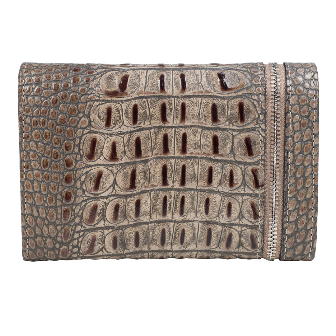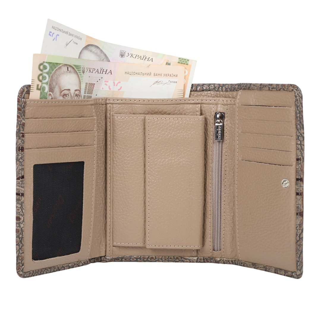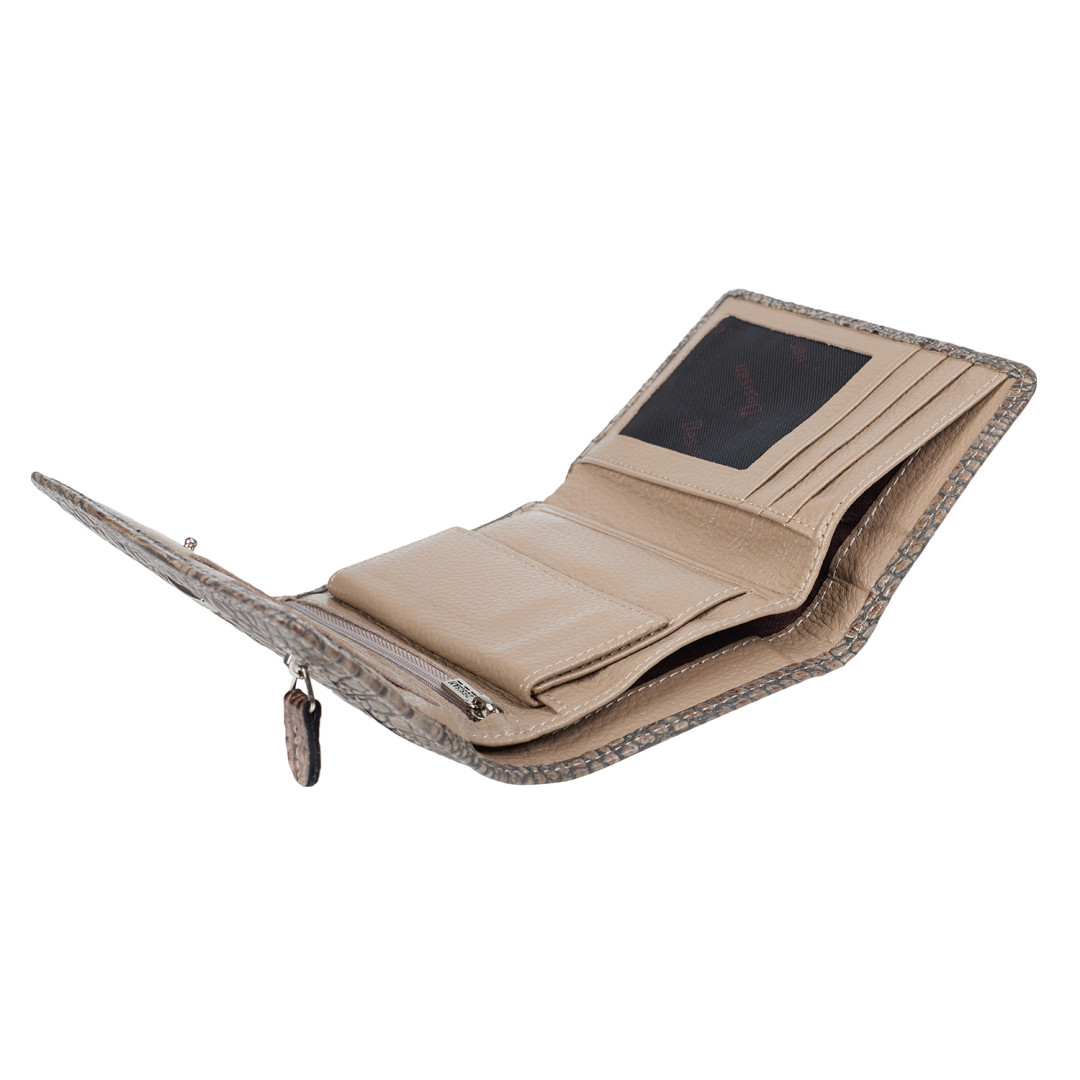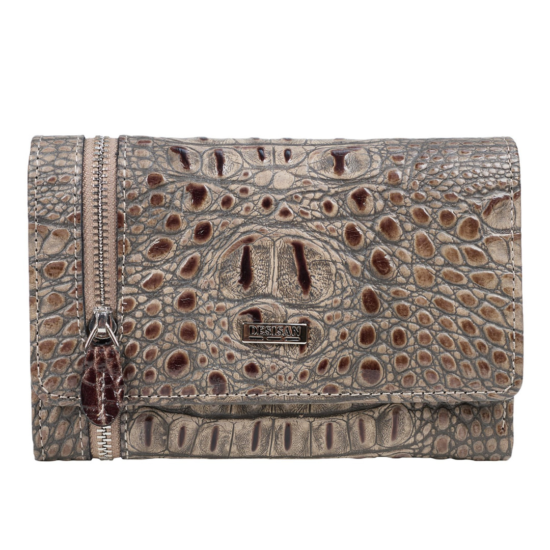 Женский кошелек Desisan выполнен из натуральной кожи под крокодила в бежевом цвете.