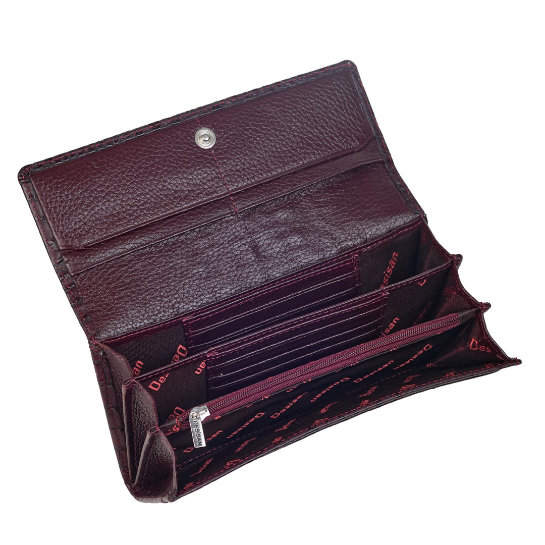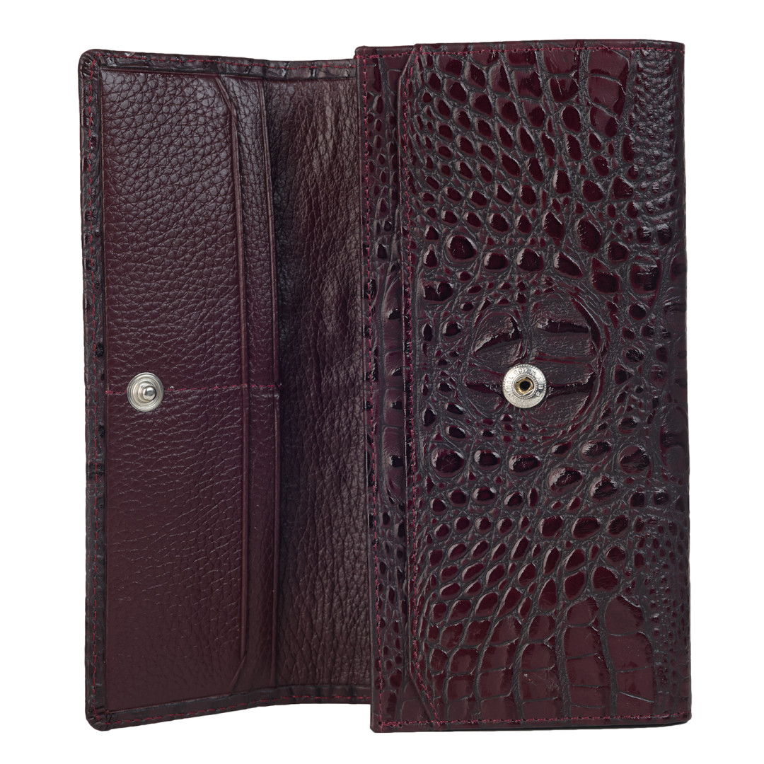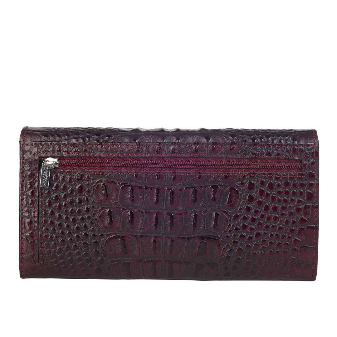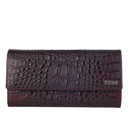 Женский кошелек Desisan выполнен из натуральной кожи под крокодила в бордовом цвете.