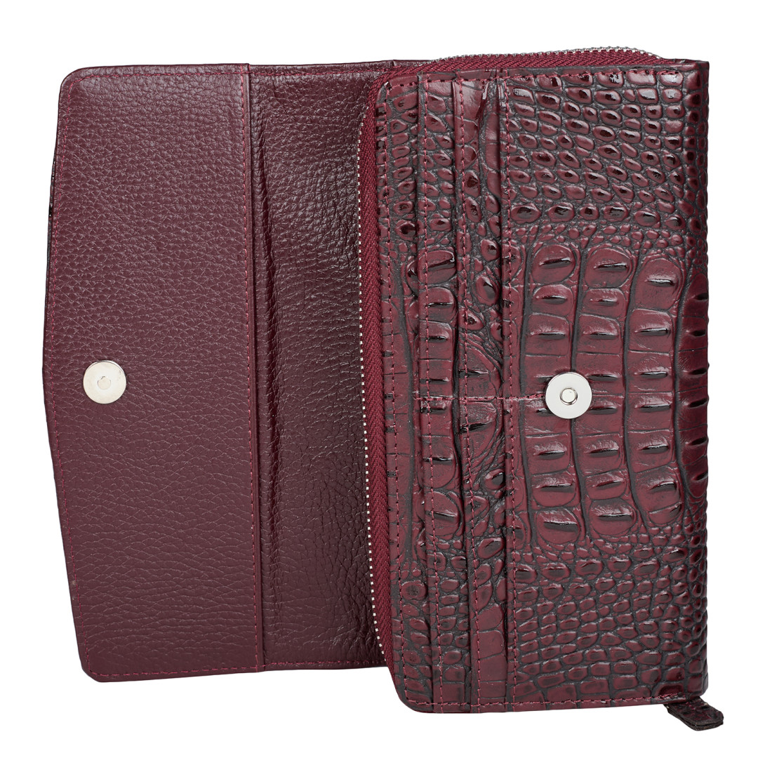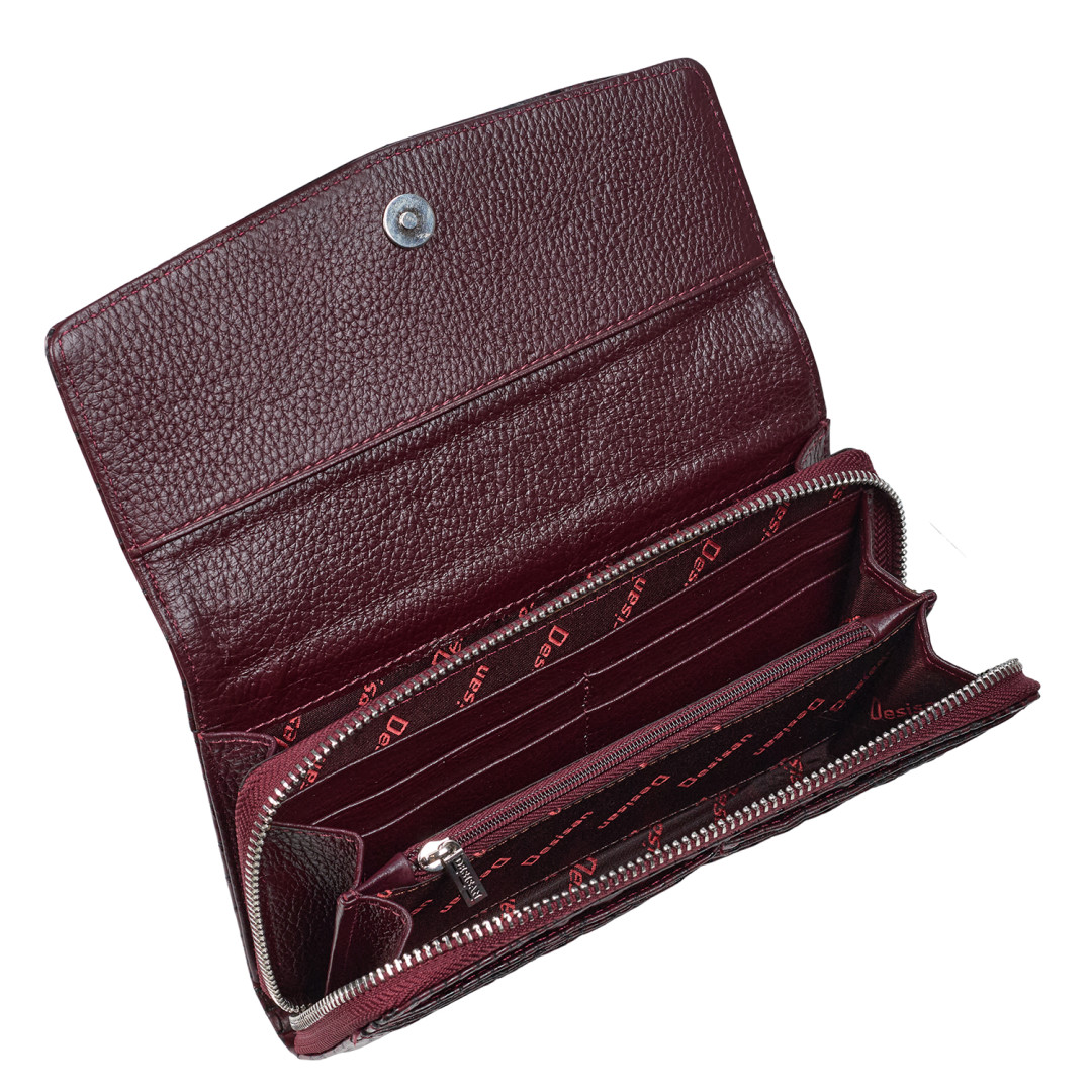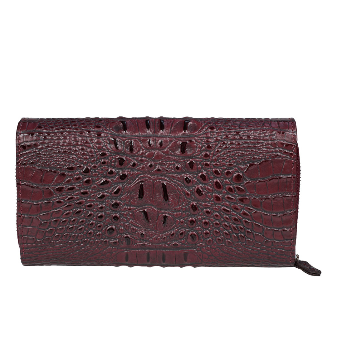 Женский кошелек Desisan выполнен из натуральной кожи под крокодила в бордовом цвете.