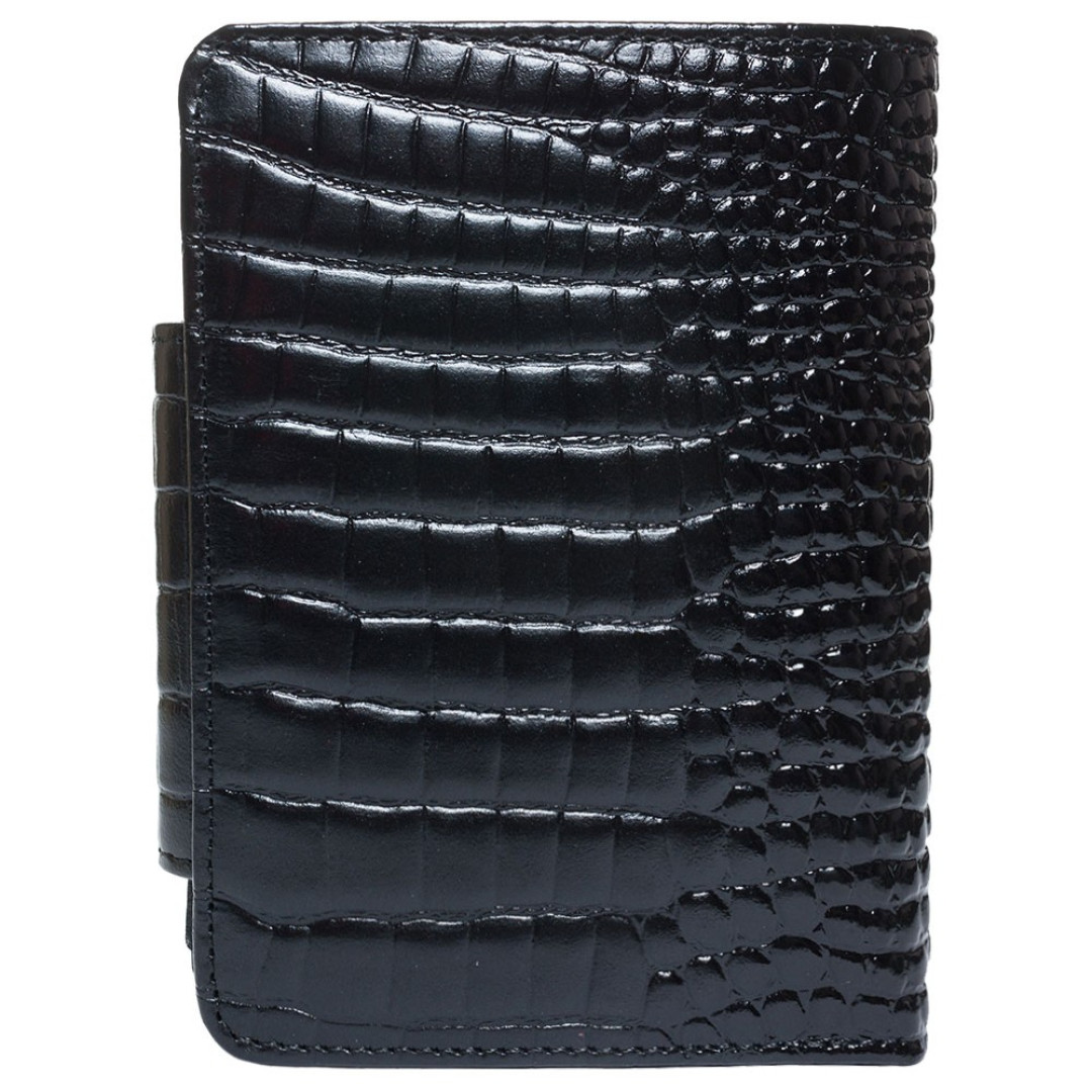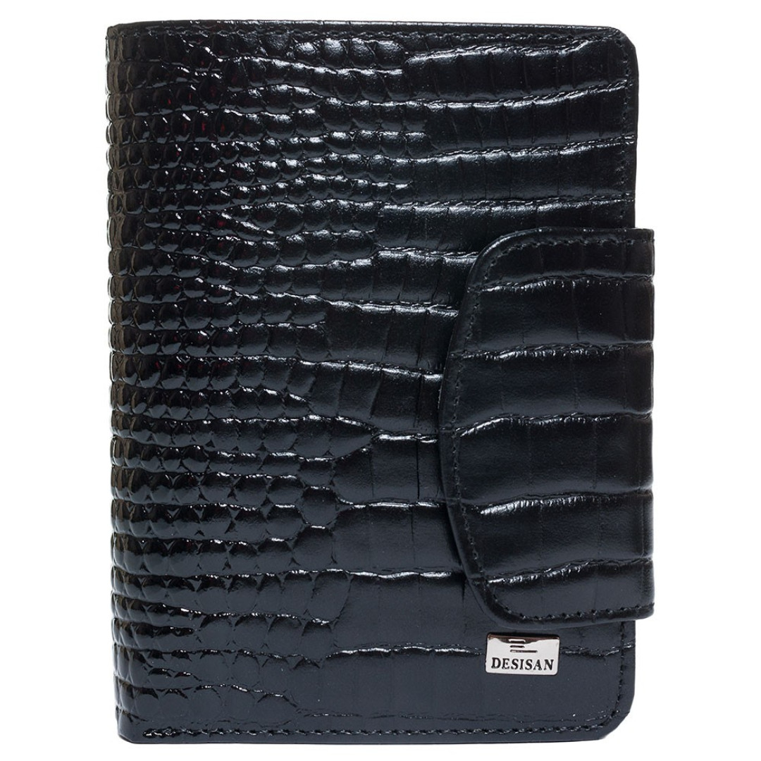 Женский кошелек Desisan выполнен из натуральной кожи под крокодила в черном цвете.