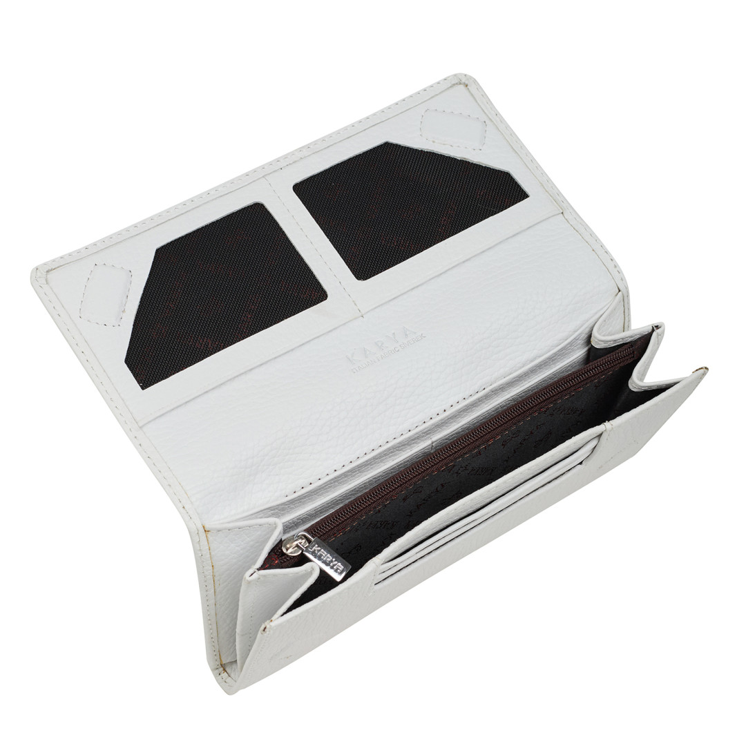 Женский кошелек KARYA выполнен из натуральной кожи (флотар) в белом цвете.