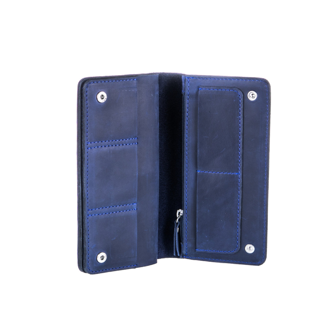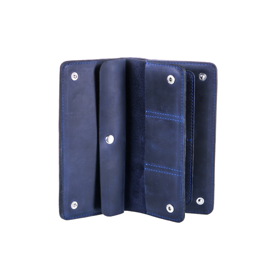 Закрывается Смарт при помощи двух скрытых кнопок. Внутри имеет 3 больших отделения (для купюр, паспорта), 8 отделения для банковских карт и визиток и одно большое отделение на кнопке для для купюр, телефона, одно большое отделение на молнии для монет и других мелочей.
