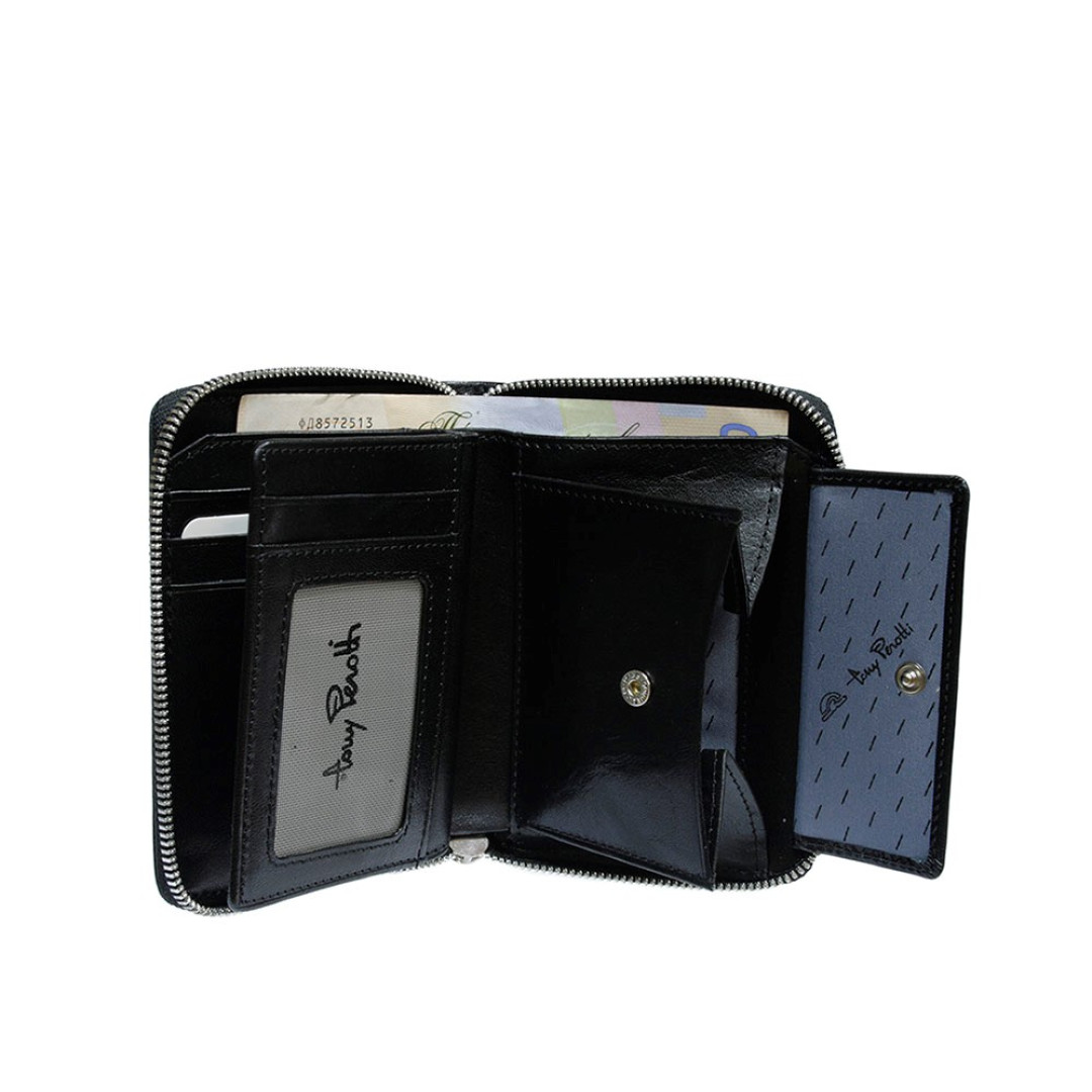 Женский кошелек TONY PEROTTI выполнен из натуральной кожи в черном цвете.