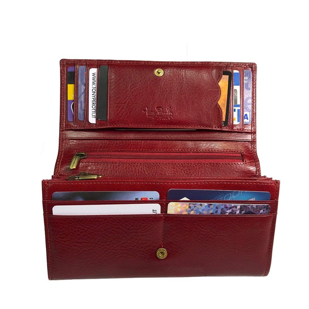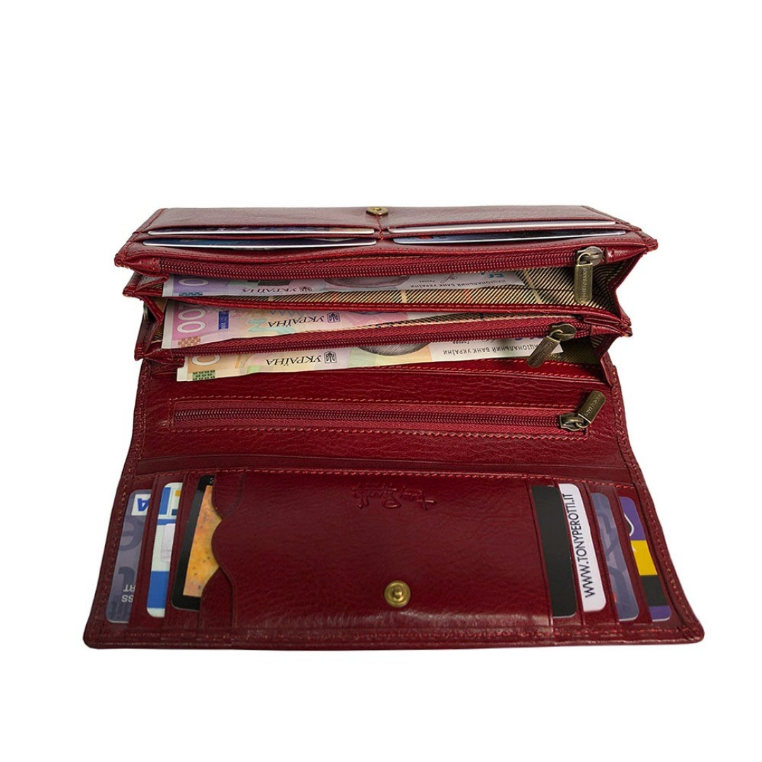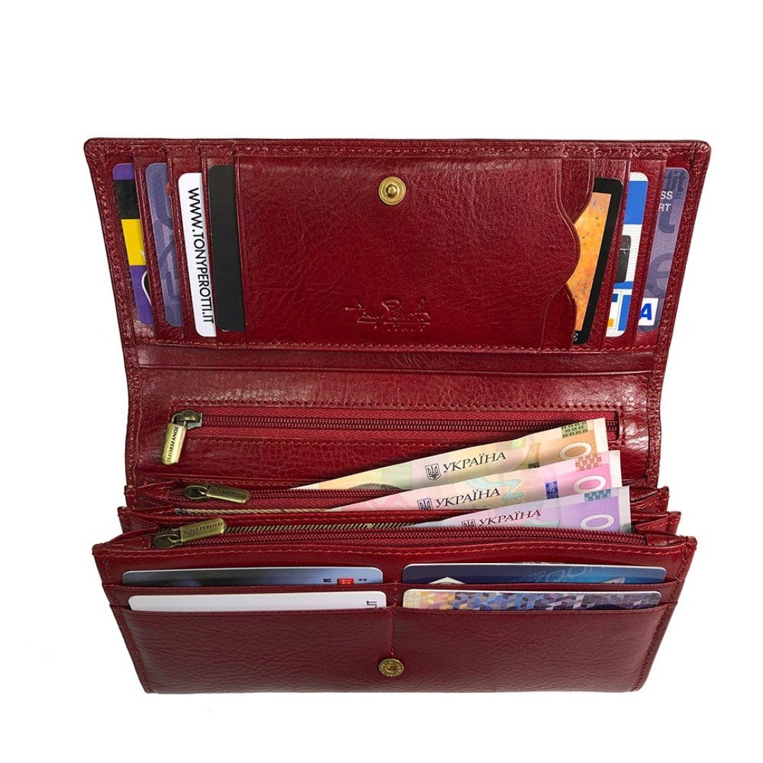 Женский кошелек TONY PEROTTI выполнен из натуральной кожи в красном цвете.