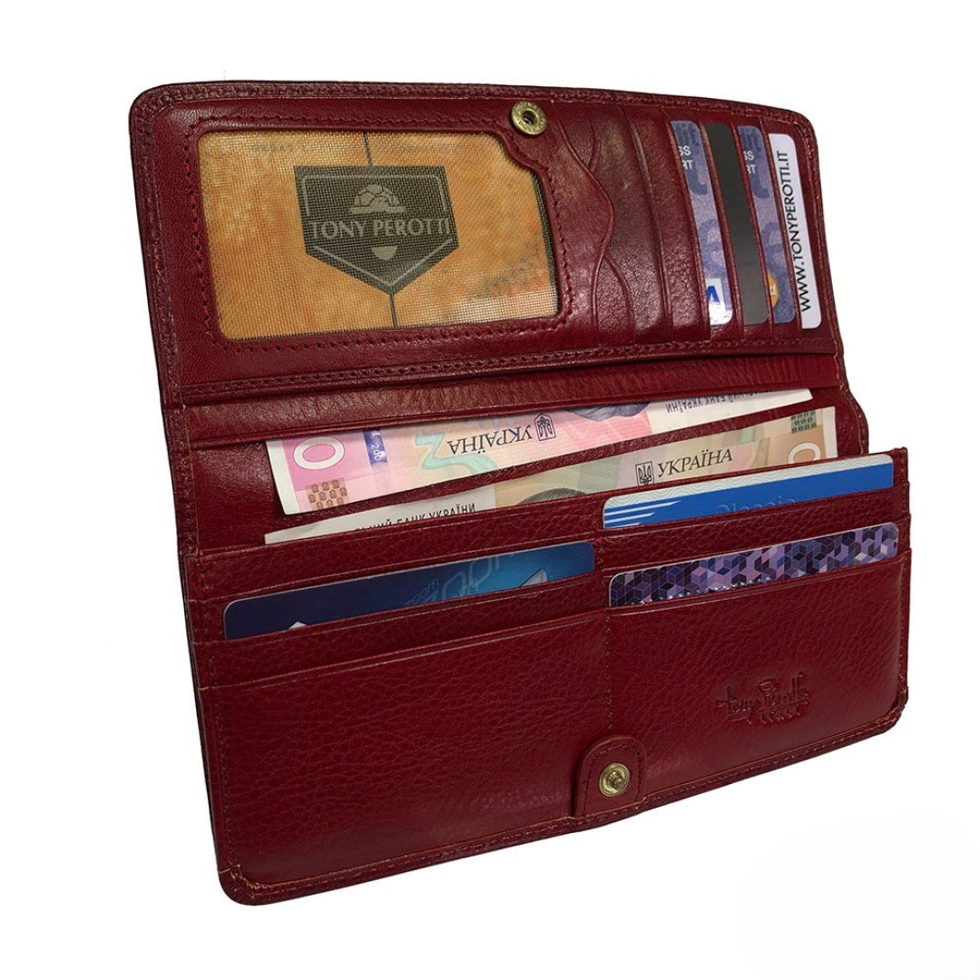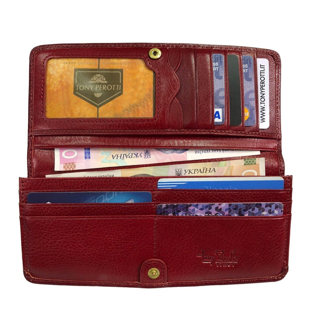 Женский кошелек TONY PEROTTI выполнен из натуральной кожи в красном цвете.