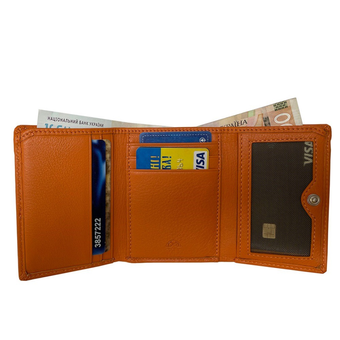 Портмоне продумано до мелочей: оно включает просторное отделение для купюр, удобную монетницу на кнопке, несколько кармашков для карт и визиток, а также дополнительные внутренние отделения для мелких документов.