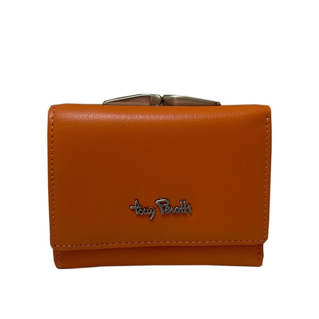 Женский кошелек TONY PEROTTI выполнен из телячьей кожи высшего качества в оранжевом цвете.