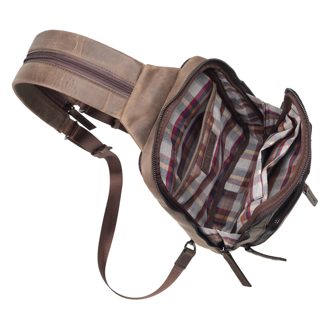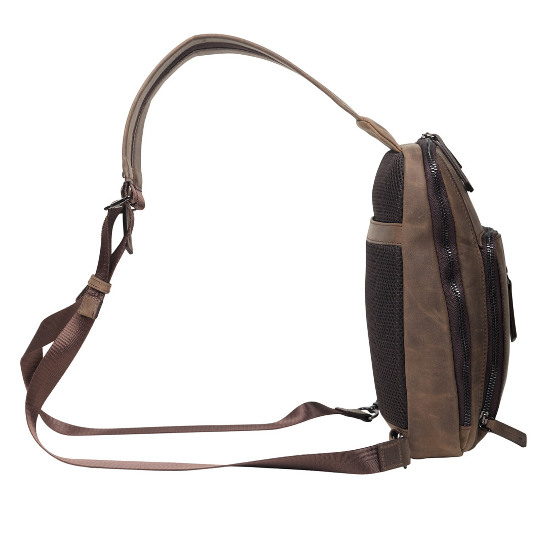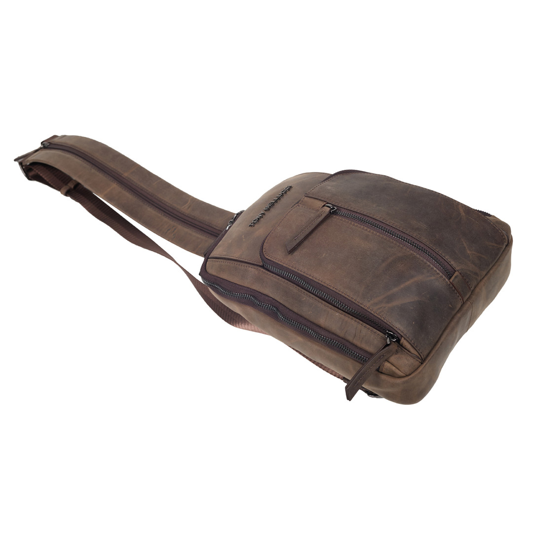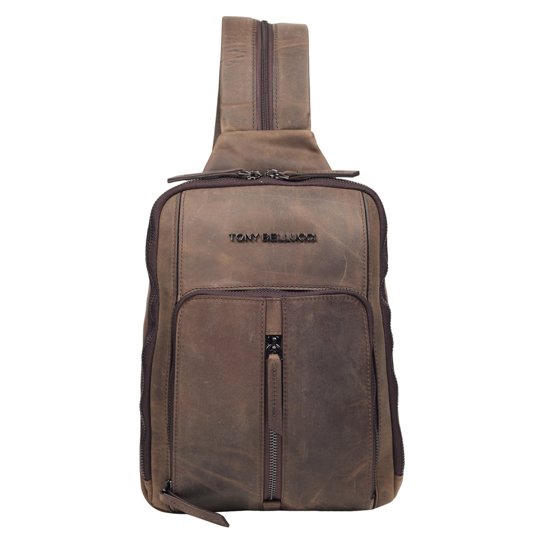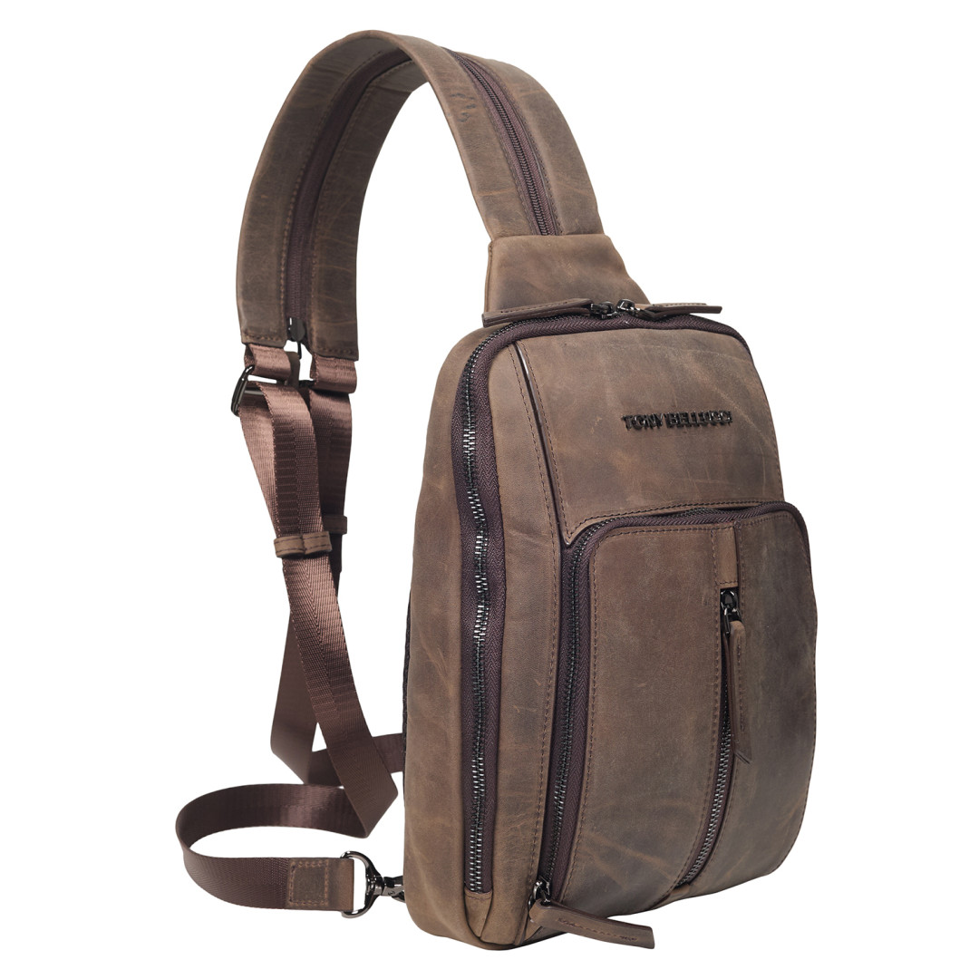 Кожаная мужская сумка-слинг Tony Bellucci коричневая 5288-06 — прекрасный выбор для вас