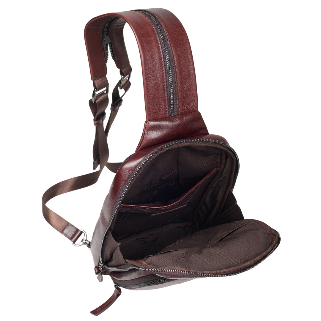 РюкзакTony Bellucci выполнен из натуральной гладкой кожи в коричневом цвете.