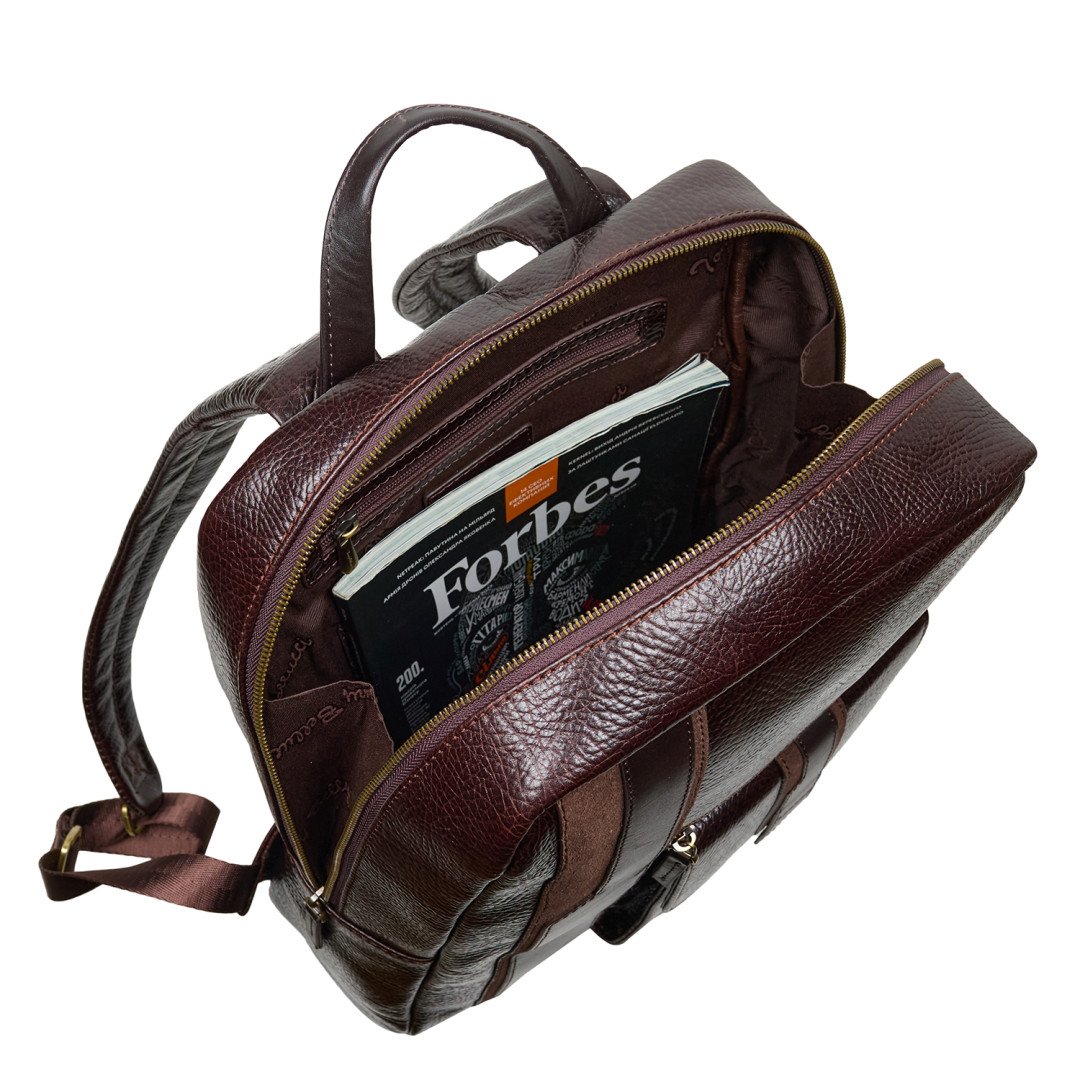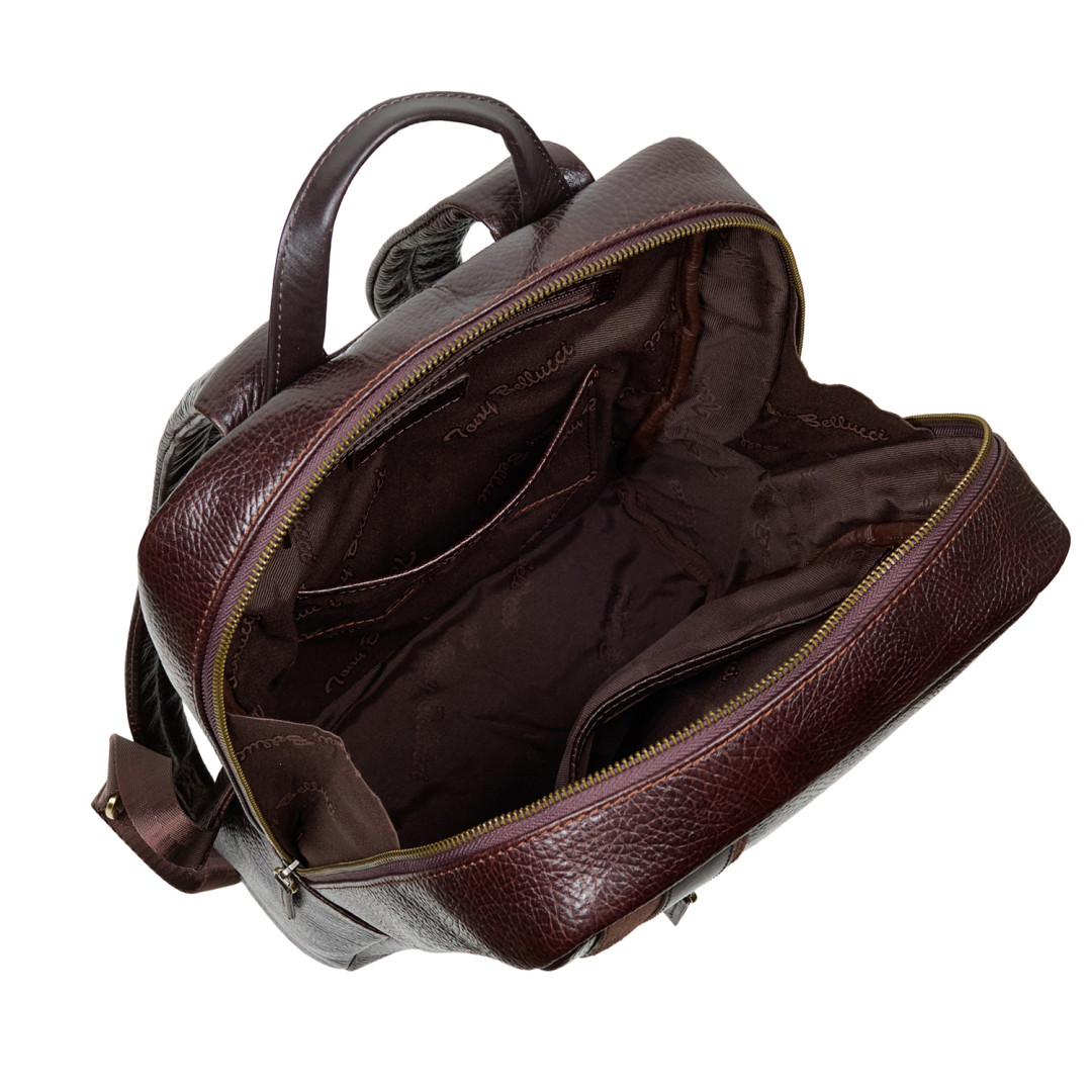 Рюкзак Tony Bellucci выполнен из натуральной кожи (флотар) в коричневом цвете.