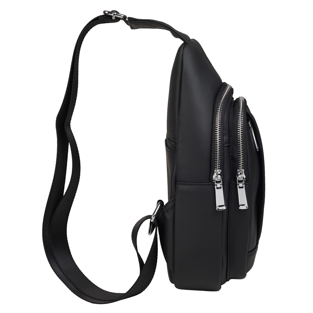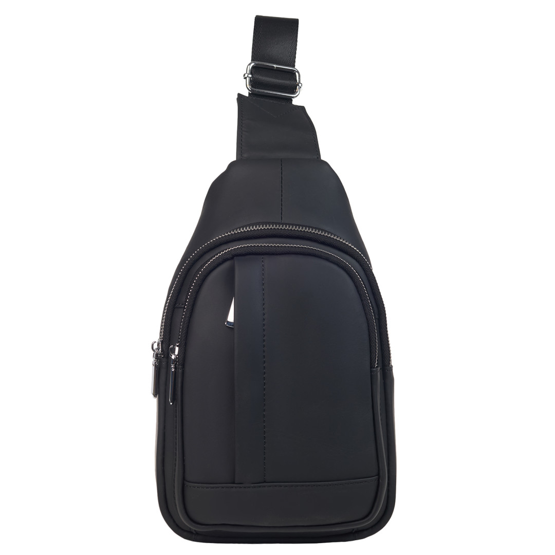 Мужской рюкзак через плечо Buffalo Bags выполнен из натуральной гладкой кожи в черном цвете.