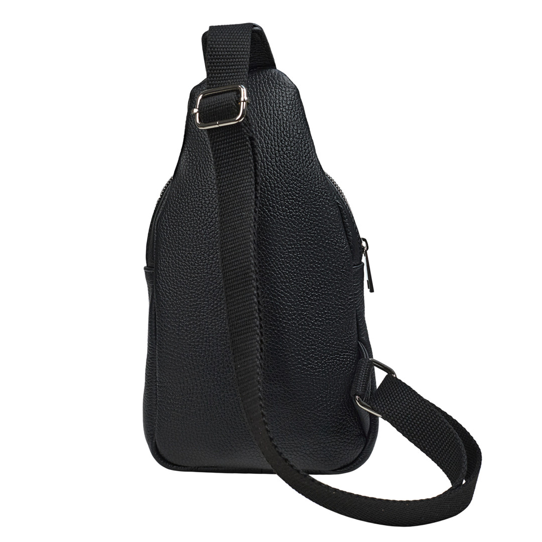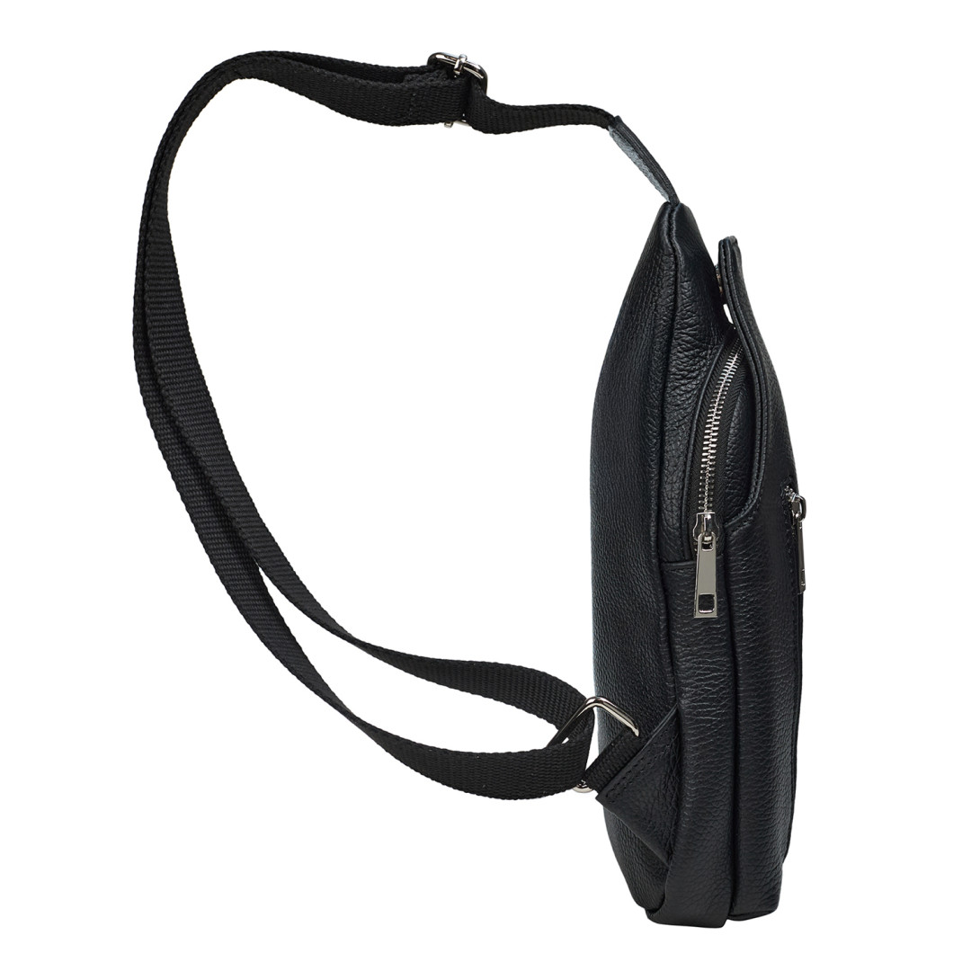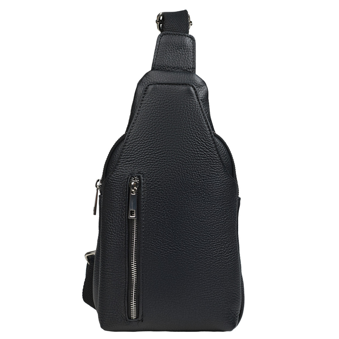 Мужской рюкзак через плечо Virginia Conti выполнен из натуральной кожи в черном цвете.