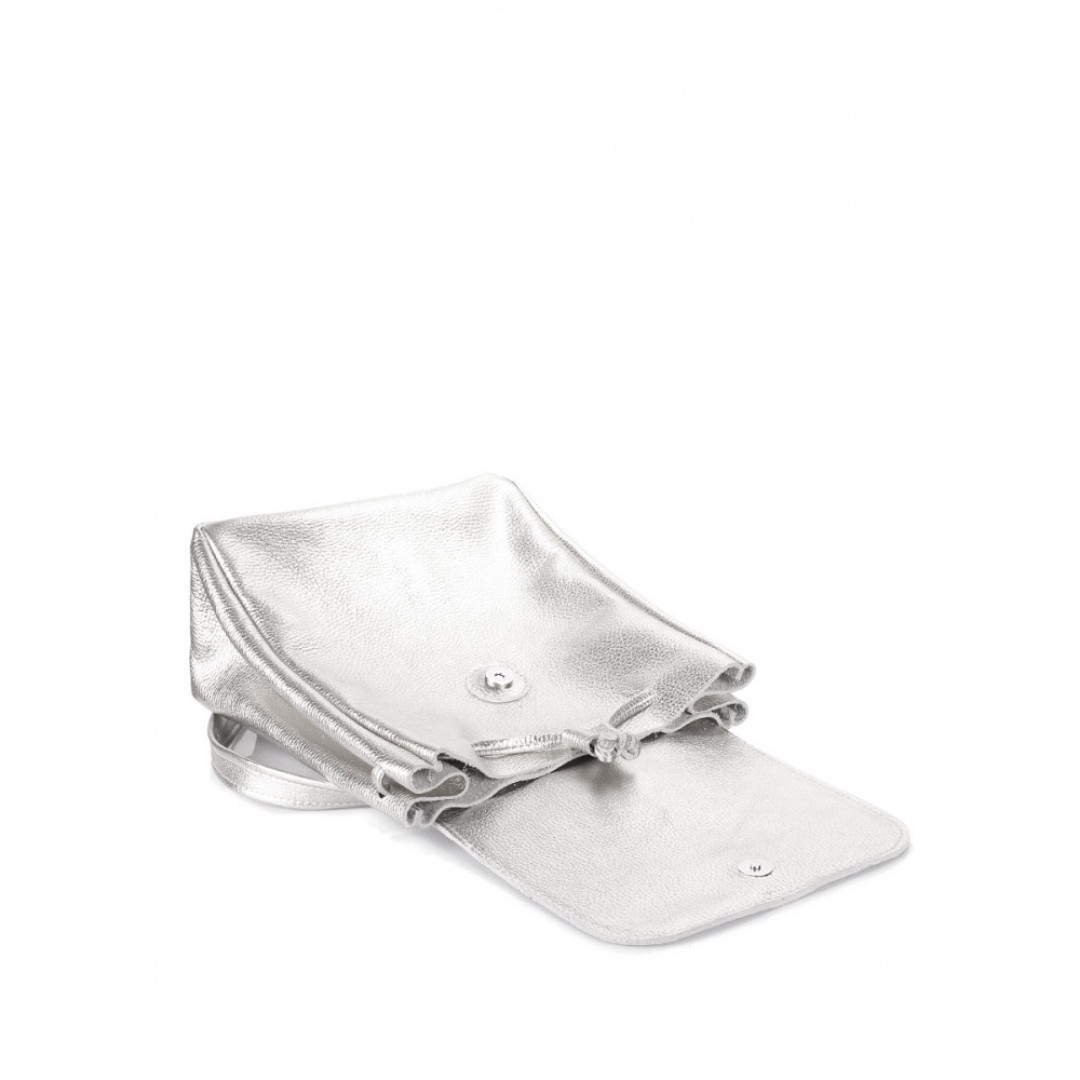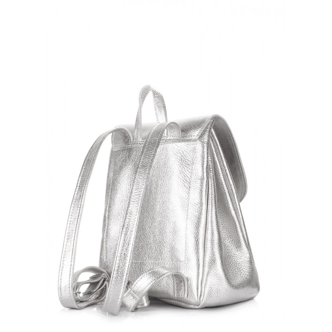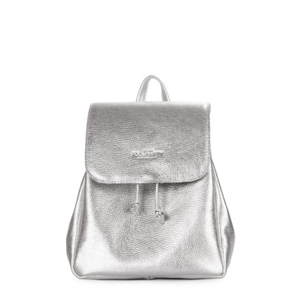 Серебристый женский рюкзак POOLPARTY выполнен из натуральной кожи.