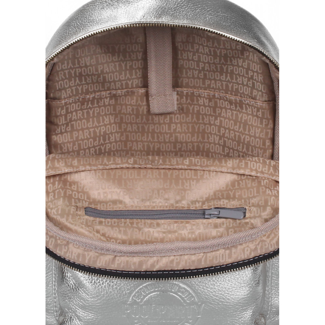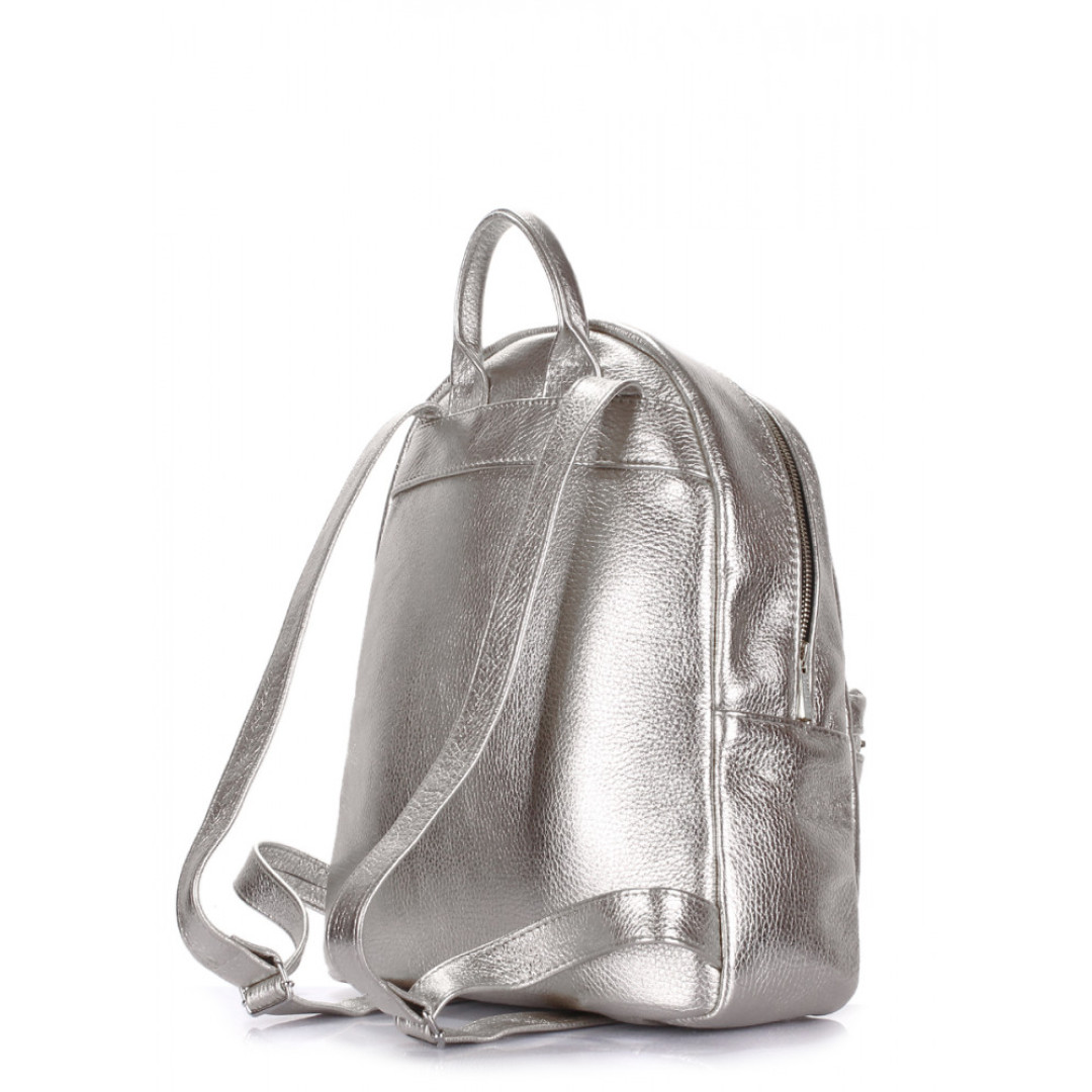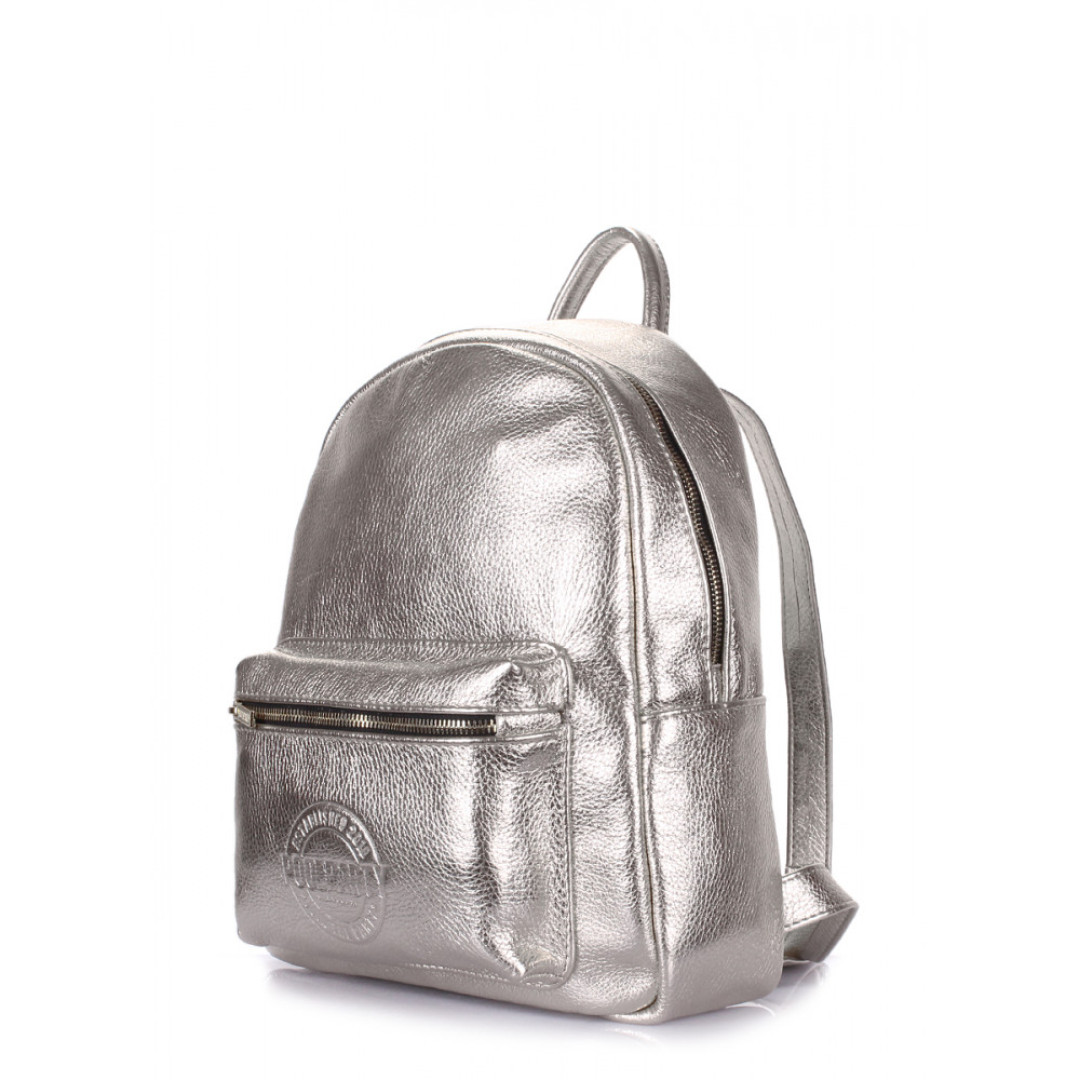 Серебристый женский рюкзак POOLPARTY выполнен из натуральной кожи.