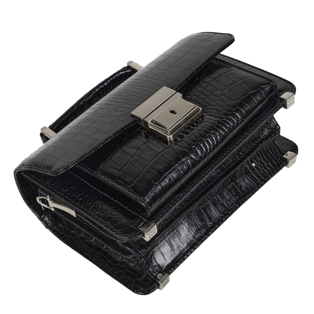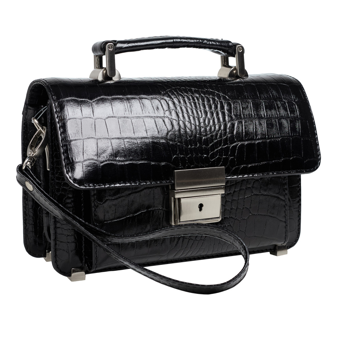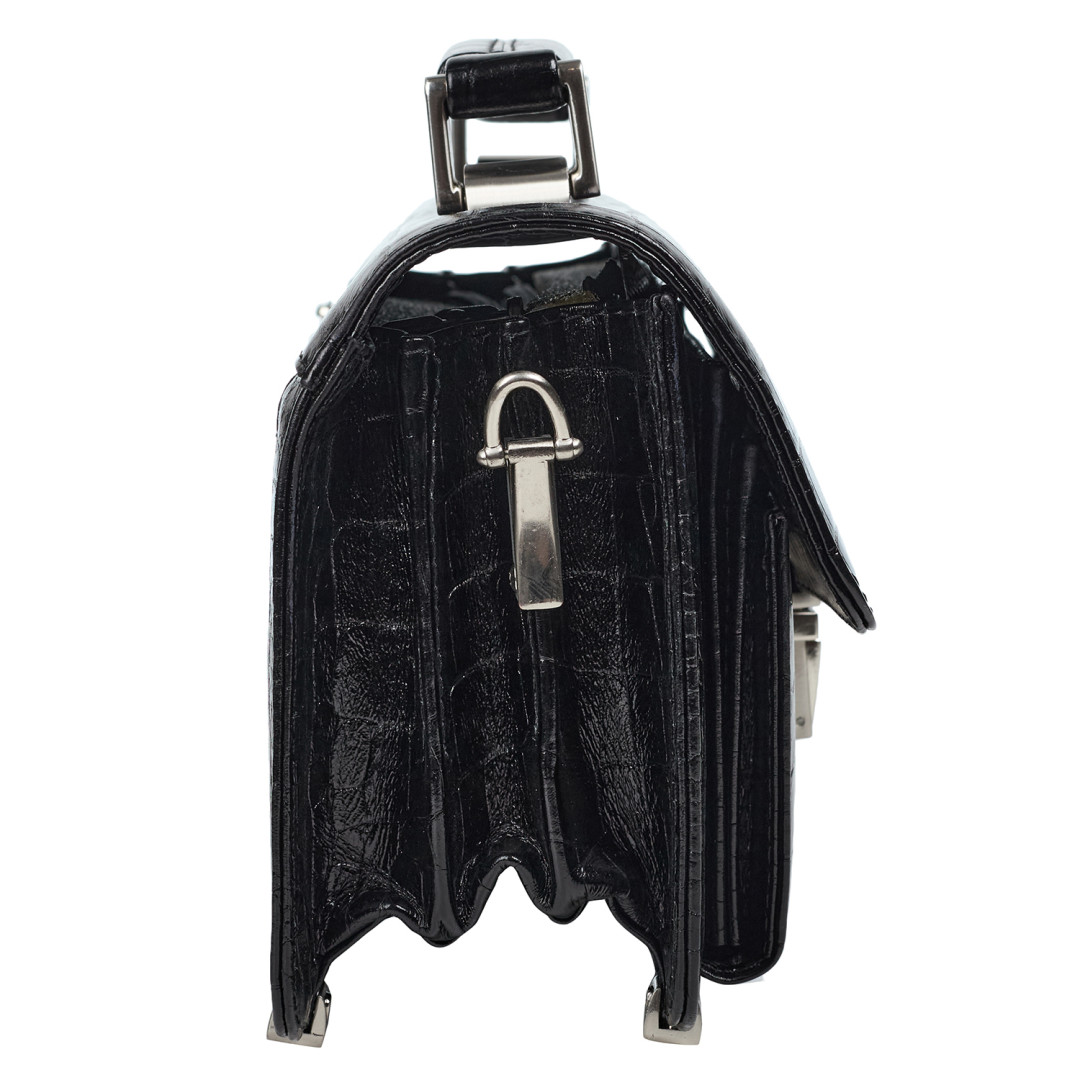 Мужская барсетка Canpellini выполнена из натуральной кожи под крокодила в черном цвете.