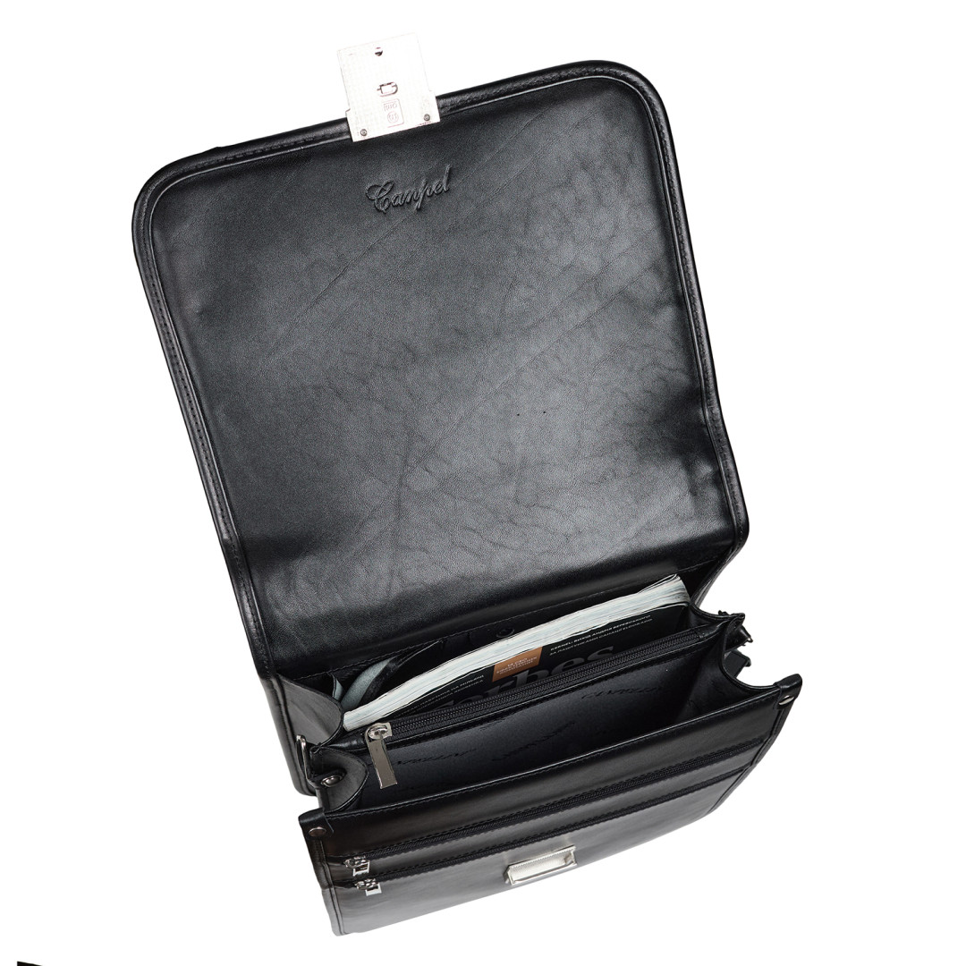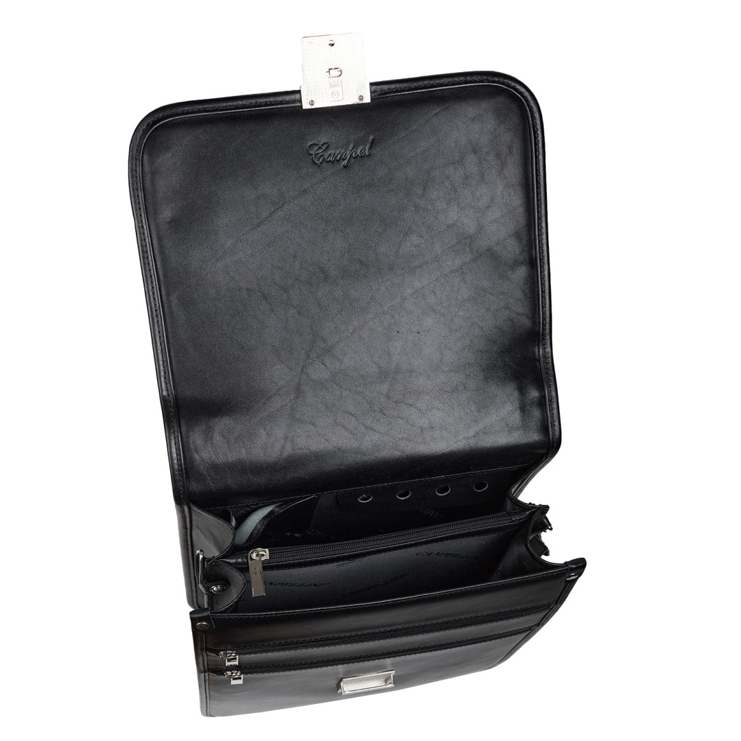 Мужской кожаный портфель Canpellini выполнен из натуральной гладкой кожи в черном цвете.