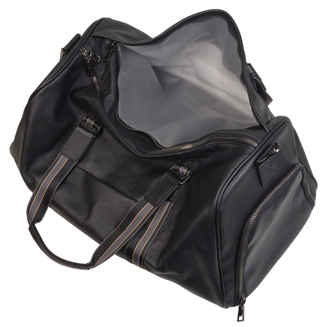 Дорожная сумка Buffalo Bags выполнена из натуральной кожи (флотар) в черном цвете.