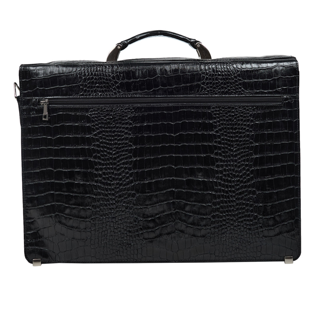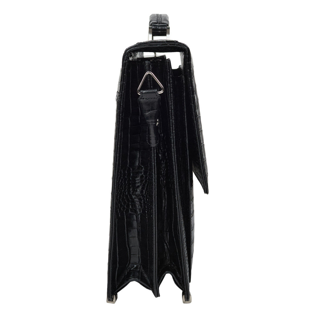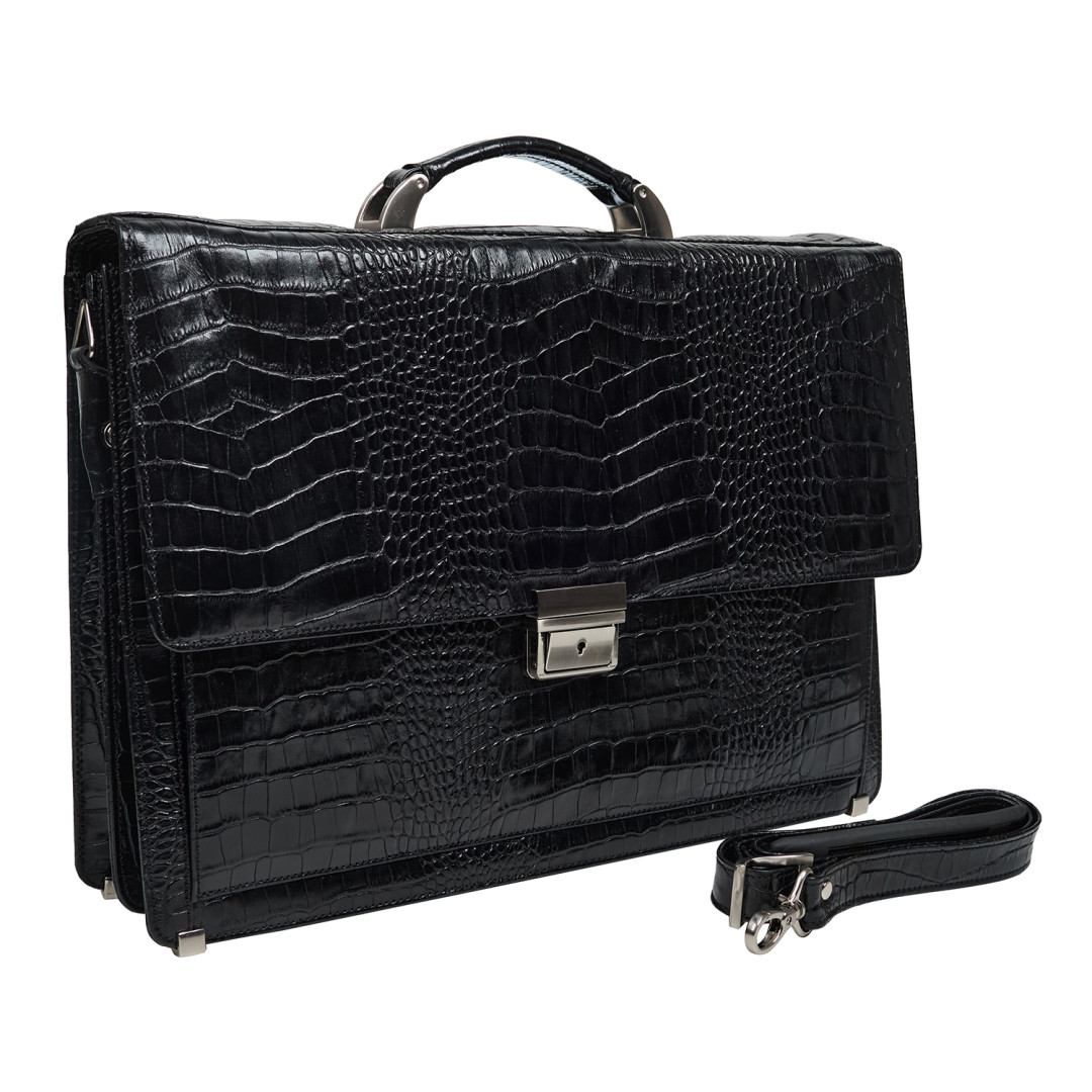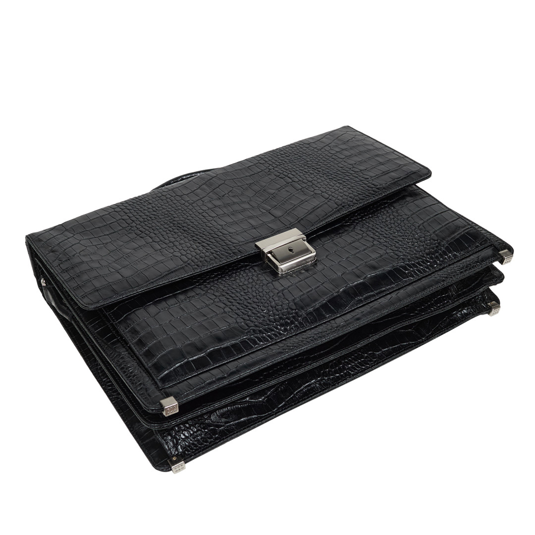 Мужской деловой портфель Canpellini выполнен из натуральной кожи под крокодила в черном цвете.