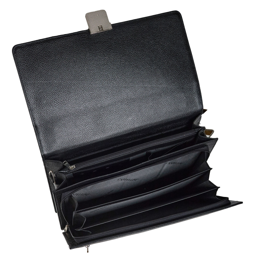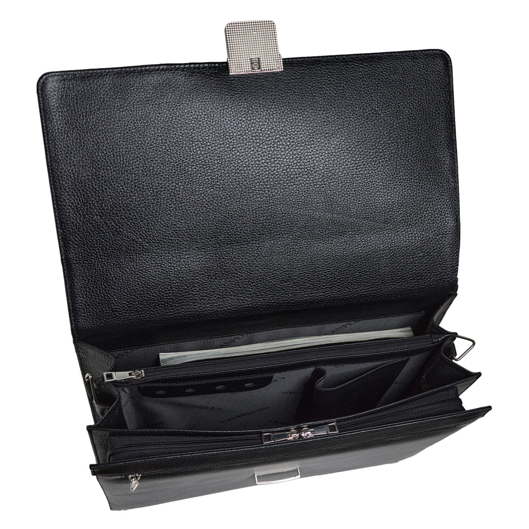 Мужской деловой портфель Canpellini выполнен из натуральной кожи (флотар) в черном цвете.
